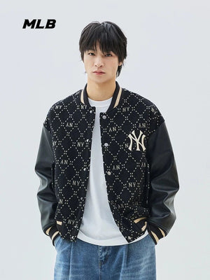 **Version NY Men and Women Couple Diamond Vintage Presbyopic Jacket Coat Wool Fashion Baseball Uniform Autumn