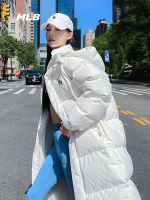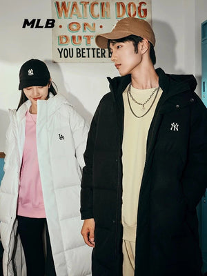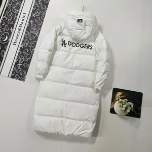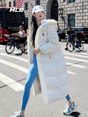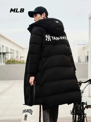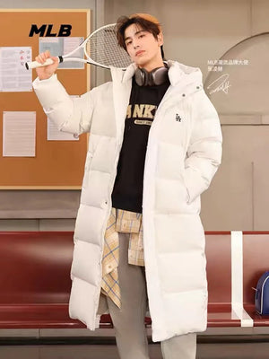 MLB Down Jacket Top Version Men and Women Couple Solid Color Long Hooded Warm Thick down Jacket Star Same Style Winter
