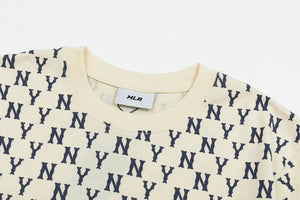 **Version MLB & NY Men's and Women's T-shirt Retro Presbyopic Full Printed Short Sleeve Couple Sports Loose Casual Embroidery Half Sleeve T-shirt Fashion Shopping Instructions