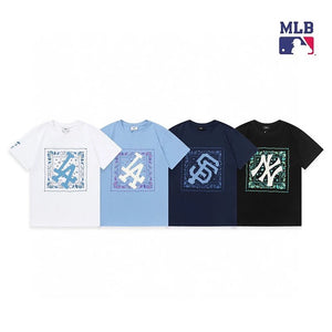 MLB T-shirt Top Version&Men and Women T T-shirt Retro Presbyopic Full Printed Short Sleeve Couple Sports Loose Casual Embroidery Half Sleeve T-shirt Fashion
