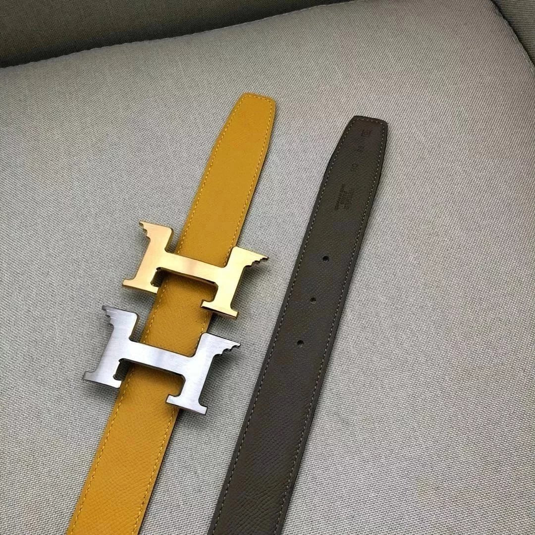 Hermes Belt Top version Men's and Women's Leather Belt Double-Sided Belt Italy Imported Cowhide Leather Original Leather Pure Steel Buckle Palm Grain h Home Double h Buckle Jeans Button