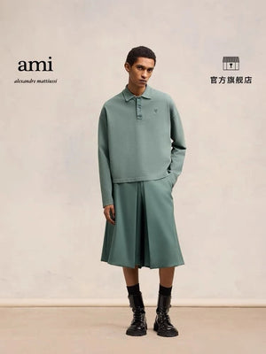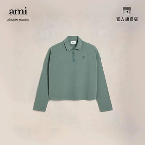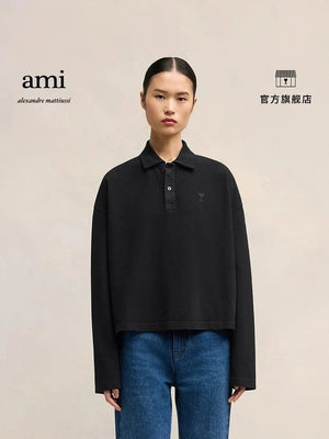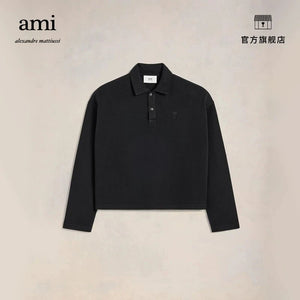Ami Hoodie Top Version Men's and Women's Same Color Love Short Casual Cotton Long Sleeve T T-shirt POLO Shirt