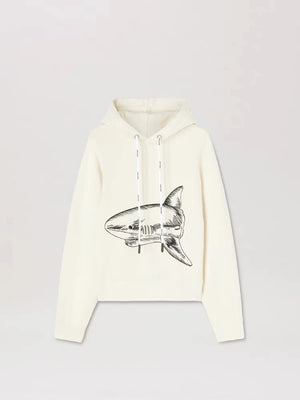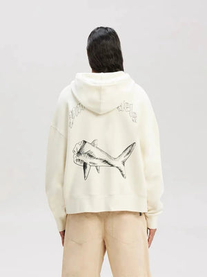 Palm Angels Hoodie Top Version Men's and Women's Same Style White Cotton Shark Loose Hooded Sweater