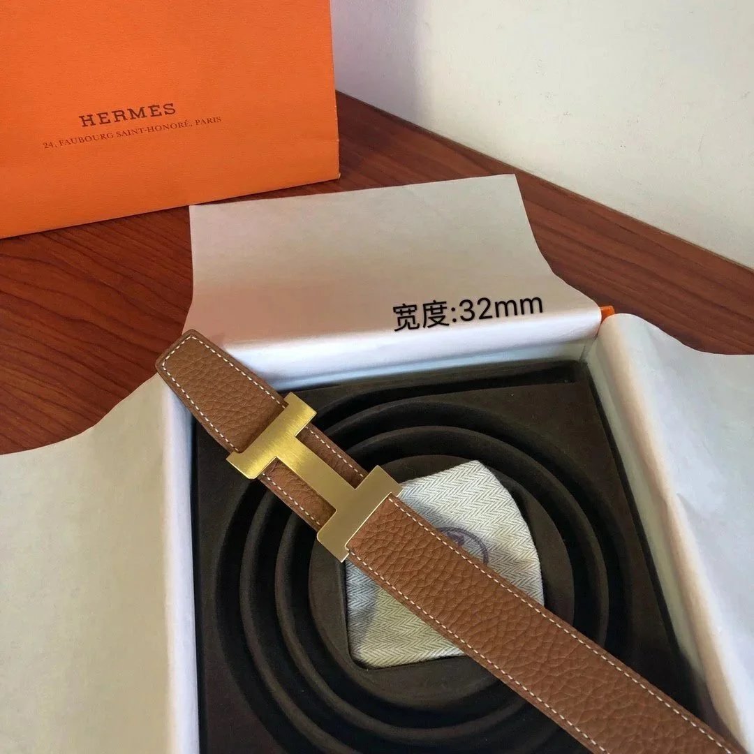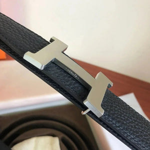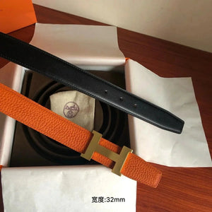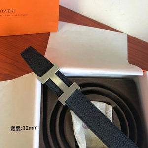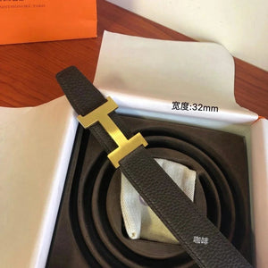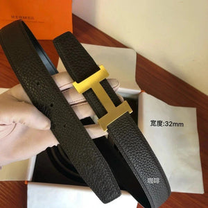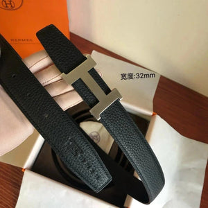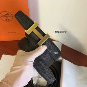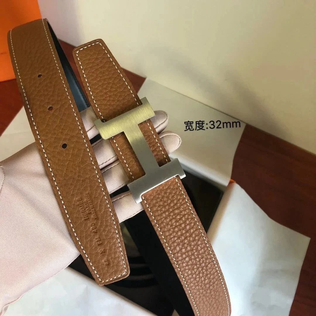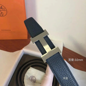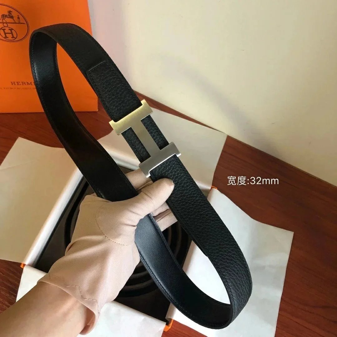 Hermes Belt Top version Men's Leather Belt Genuine Leather Casual Versatile Business Casual Belt Litchi Grain Cowhide Double-Sided Belt3.2cm