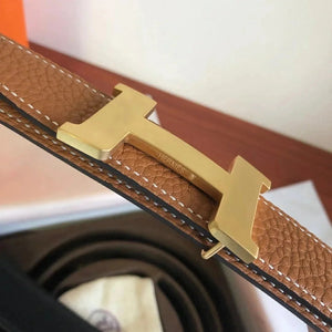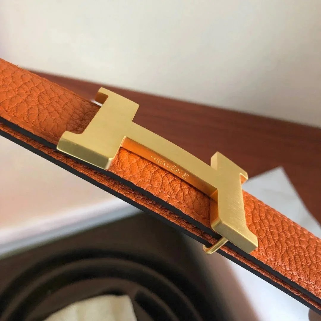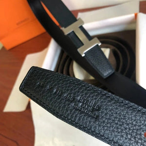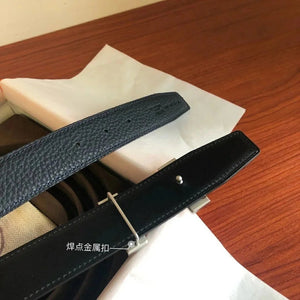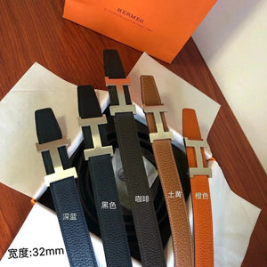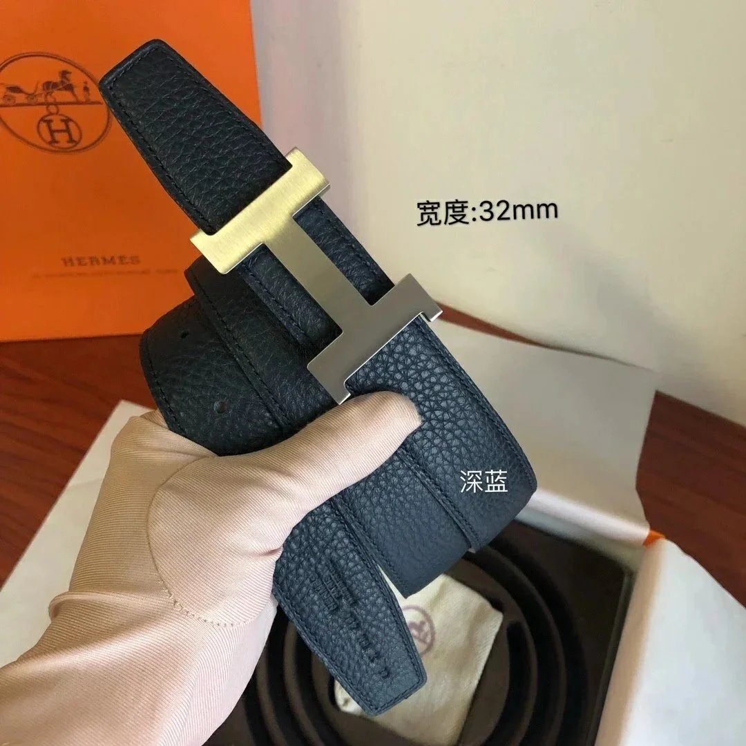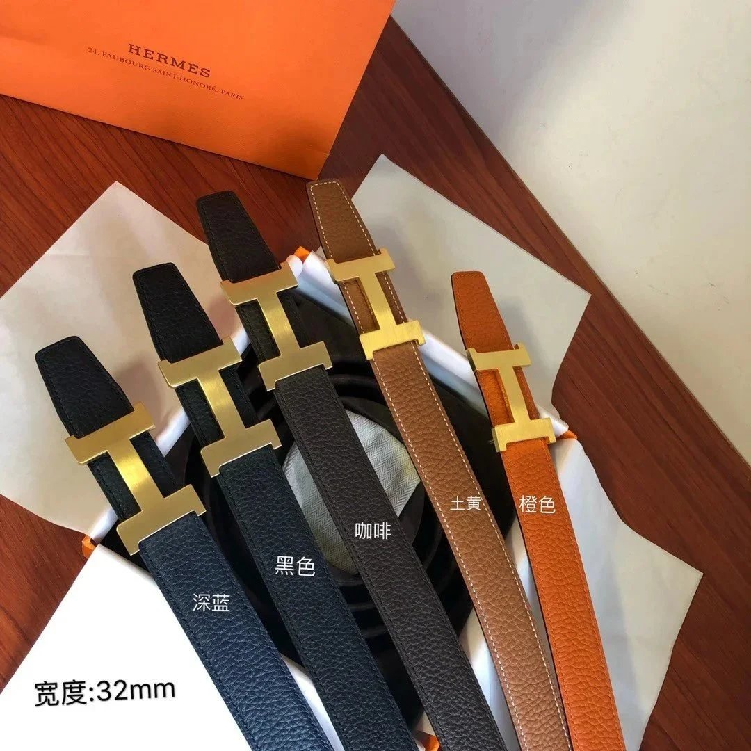 Hermes Belt Top version Men's Leather Belt Genuine Leather Casual Versatile Business Casual Belt Litchi Grain Cowhide Double-Sided Belt3.2cm