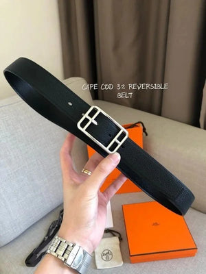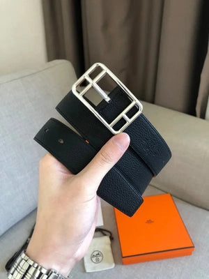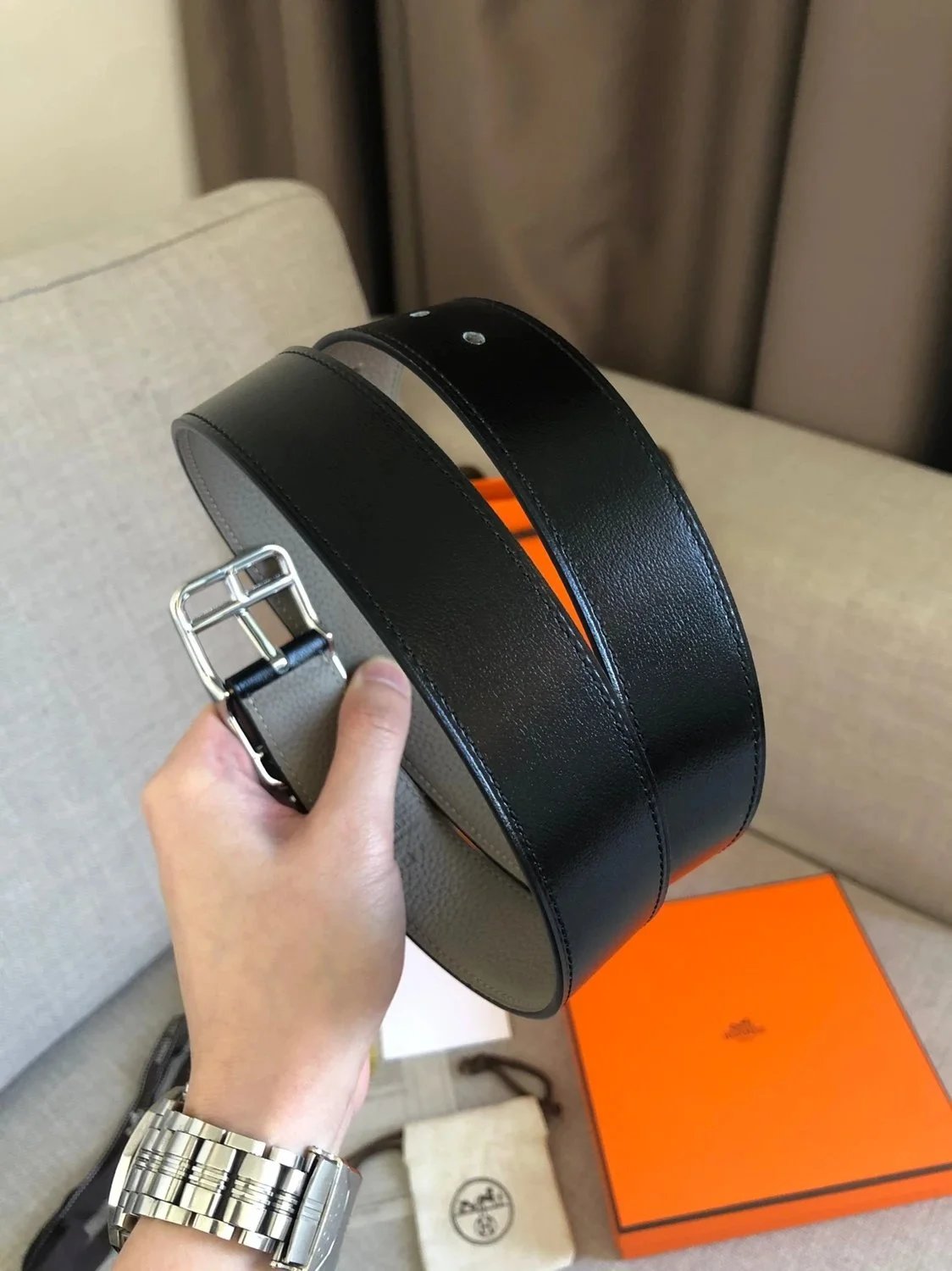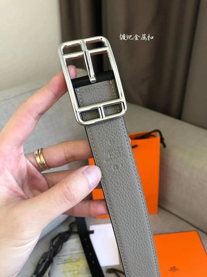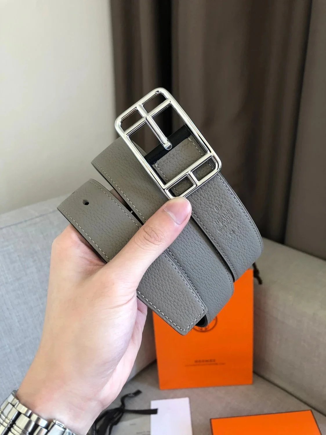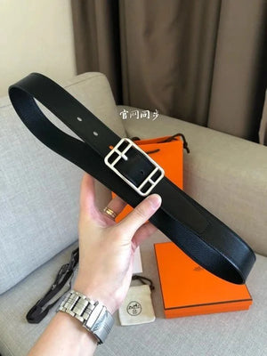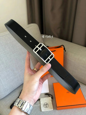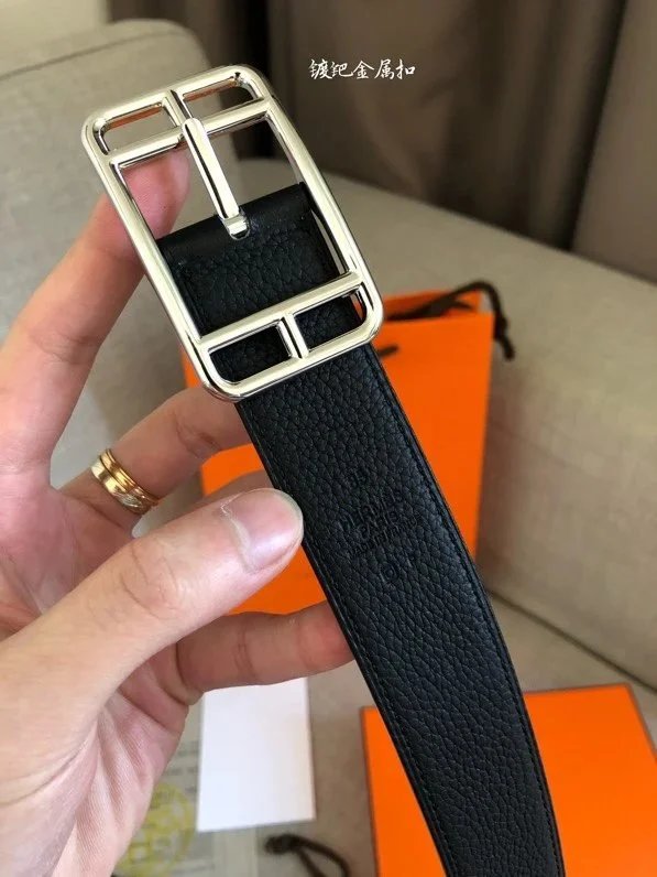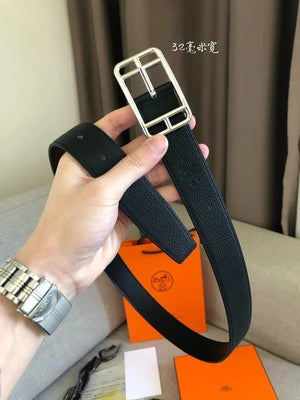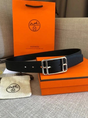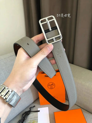 Hermes Belt Top version Men's Women's Belt Genuine Leather Double-Sided Belt Italy Imported First Layer Cowhide Leather Pure Original Leather Pure Steel Buckle h Home Unisex3.2cm Wide