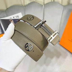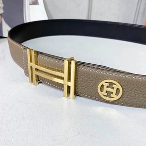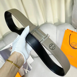 Hermes Belt Top version Men's Women's Belt Genuine Leather Double-Sided Belt Italy Imported First Layer Cowhide Leather Pure Steel Buckle h Home Unisex3.8cm Wide
