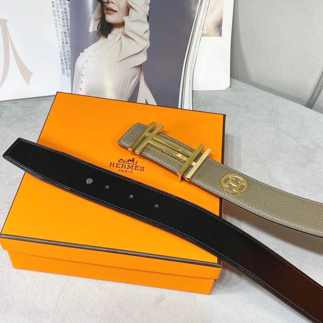 **Original Order Surrogate Shopping Quality Hermes Hermes Men's Women's Belt Genuine Leather Double-Sided Belt Italy Imported First Layer Cowhide Leather Pure Steel Buckle H Home Unisex 3.8cm Wide Pre-Purchase Instructions