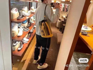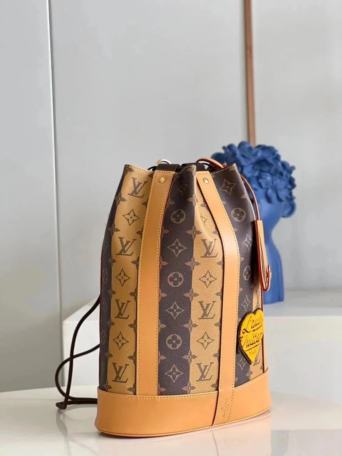 [Overseas **Original Order] Virgil Abloh, a Yellow Flower Backpack Series, and Nigo, a Japanese Streetwear Designer, Jointly Created a Randon E Messenger Bag to Pay Tribute to the Sac Marin Handbag Launched by Louis Vuitton in 1927. Monogram Stripes Brown Canvas Deconstructs Classic Monogram Elements and Presents LV Letters and Monogram Flowers in Double Layers.