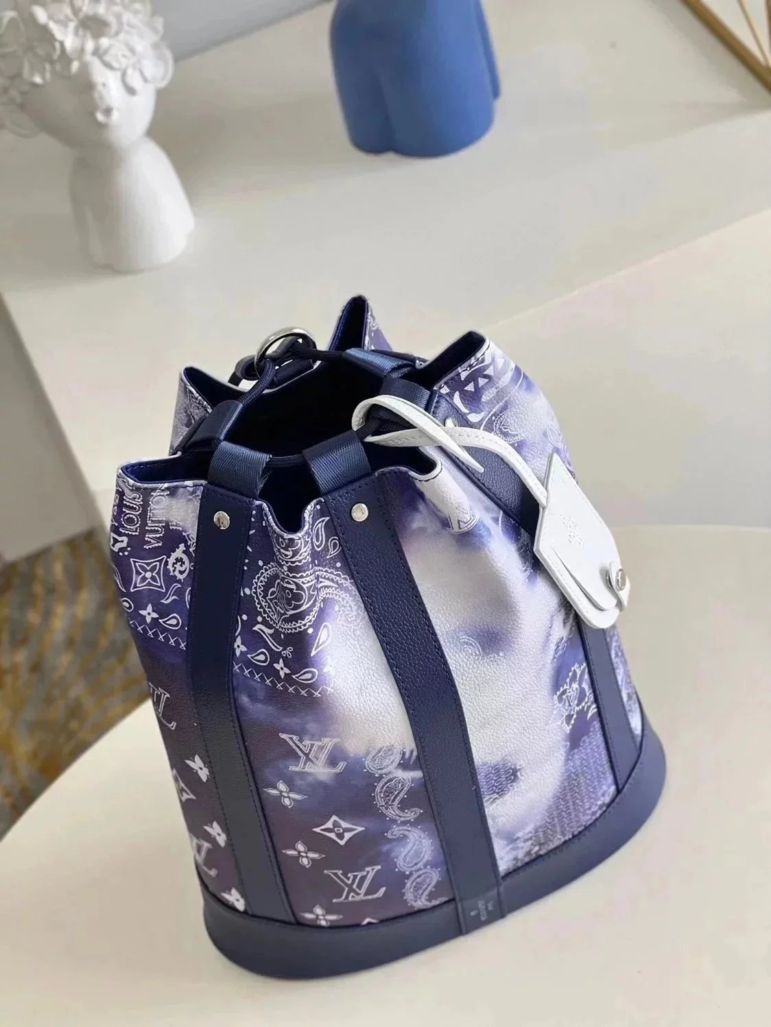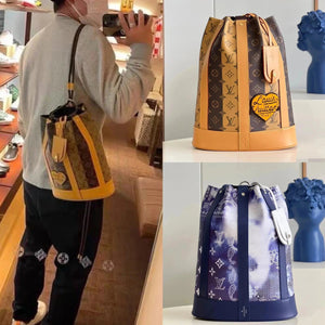 Louis Vuitton LV Men's Bag Top version 【New Arrivals】Japan First2022New Nigo2RANDONéE Limited to Men's and Women's Bags Unisex Sacmarin Bucket Bag M45968Flower Pattern Bucket Bag
