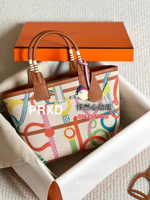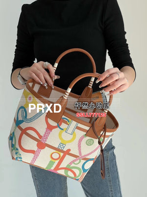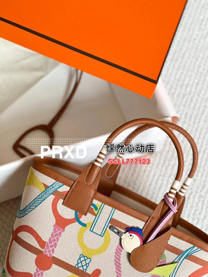 Hermes women's bag Top version New Canvas Bag Steeple25Pure Hand Production23New Steeple25Handbag Canvas Handbag