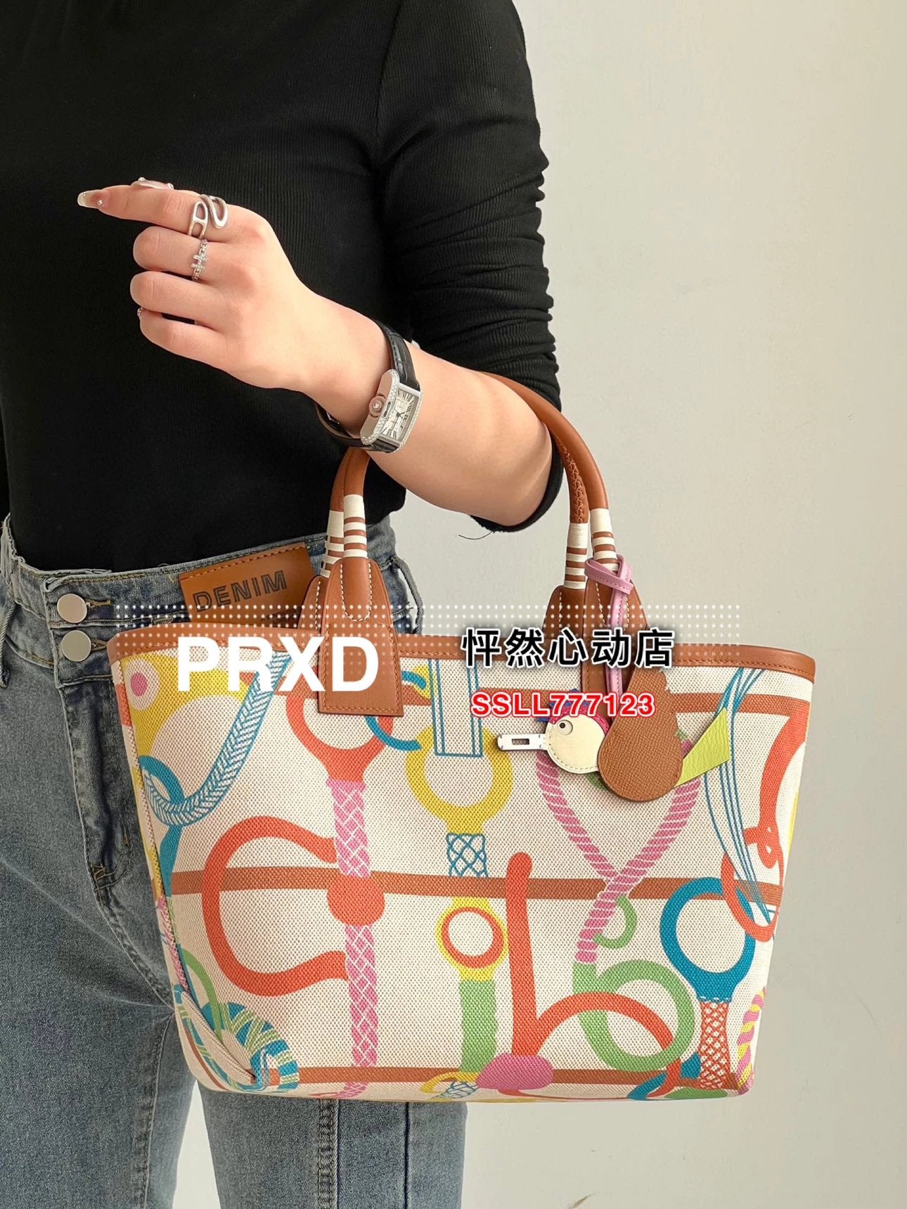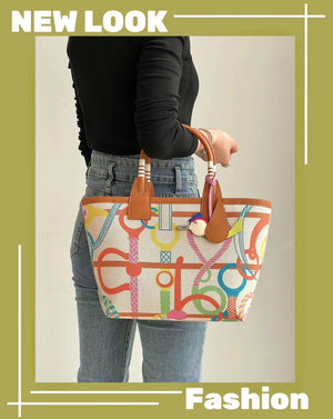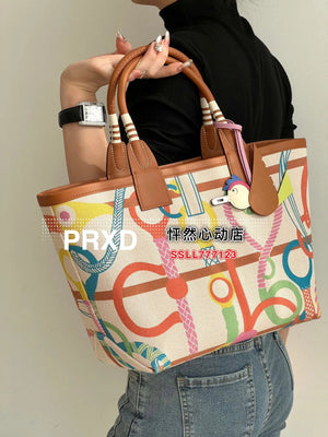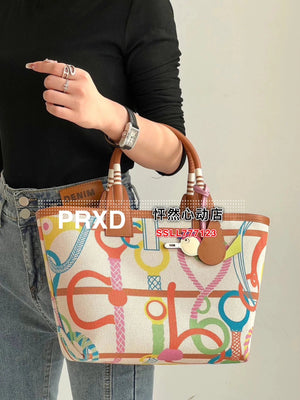 Size 25*23 * 15cm Handmade Series, New Graffiti Canvas Commuter Handbag Steeple25 Series, Large Capacity One Shoulder Hand Armpit Women's Bag Most? Small Ornaments of Classic Elements