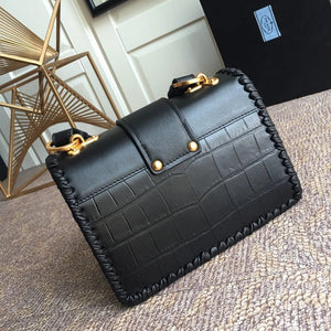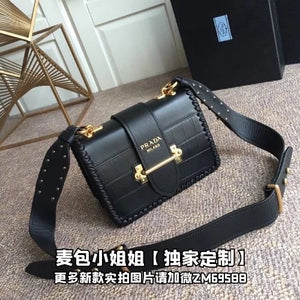 PRADA Bag Top version New Crocodile Pattern-Piece Hand-Woven Original Imported Crocodile Pattern Cowhide Inner Sheepskin Flap Bag Shoulder Bag Messenger Bag Women's Bag Women's Bag1BD405