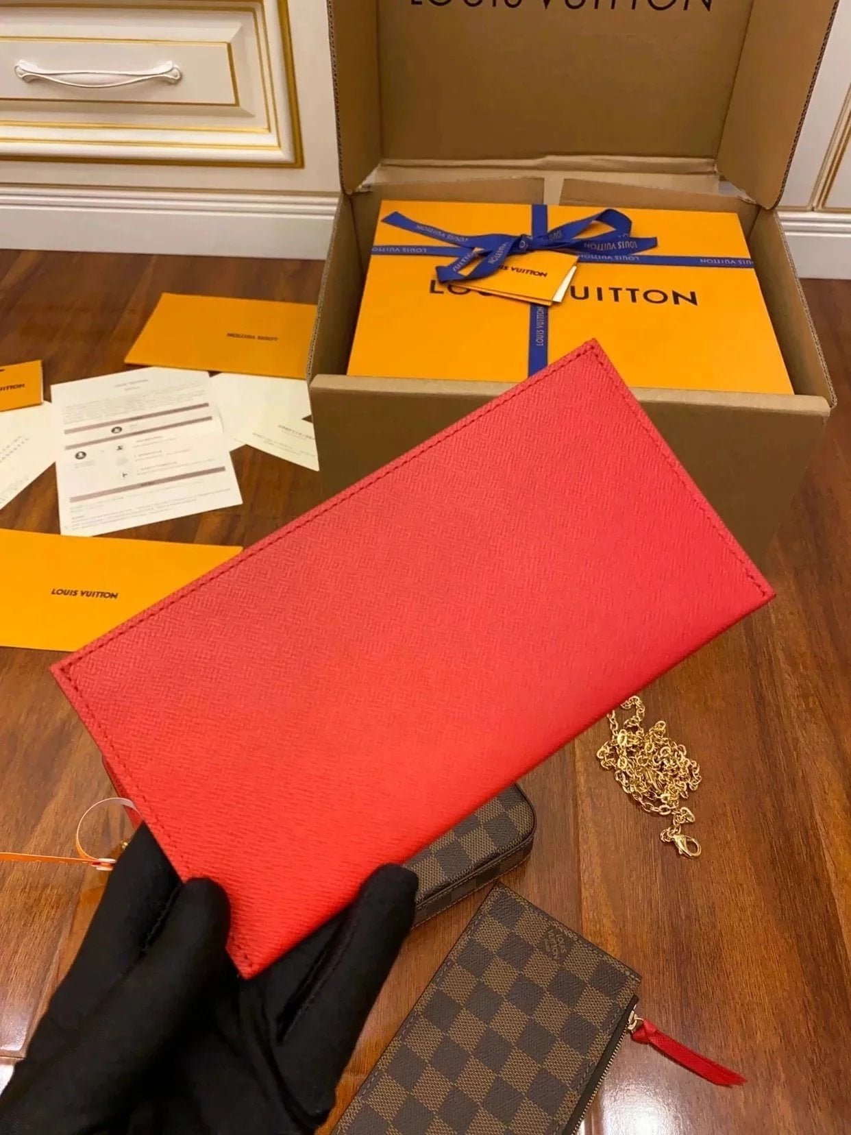 Louis Vuitton LV Wallets/Clutches Top version New felicie Presbyopic Three-in-One Mahjong Bag Envelope Package Clutch Card Holder Wallet Mobile Phone Bag Chain Bag Crossbody Women's Shoulder Bag M61276M640648135981759