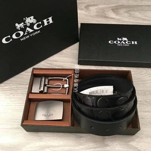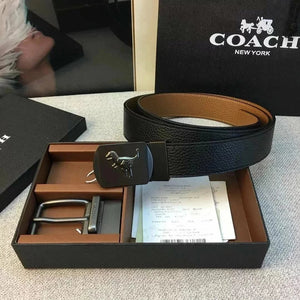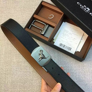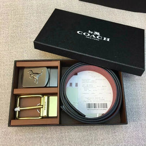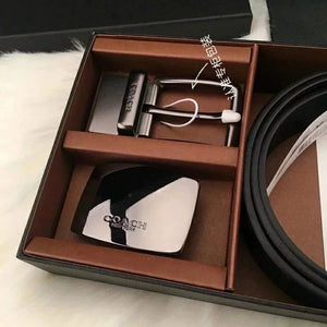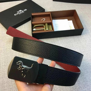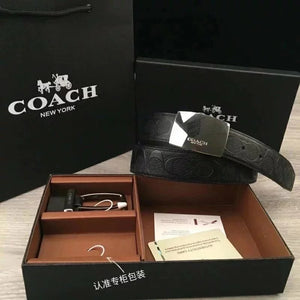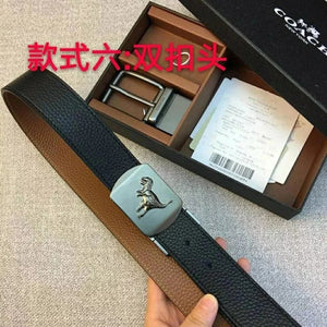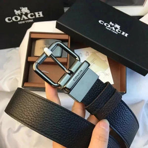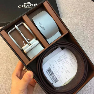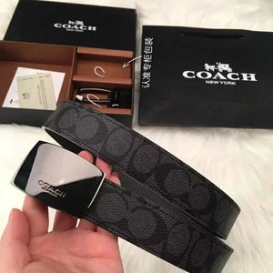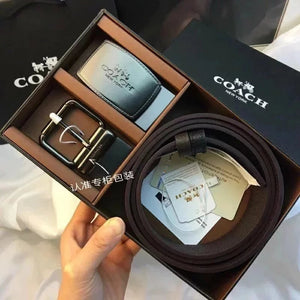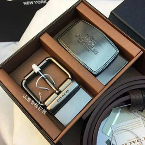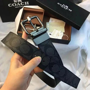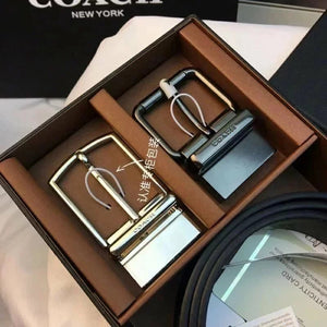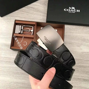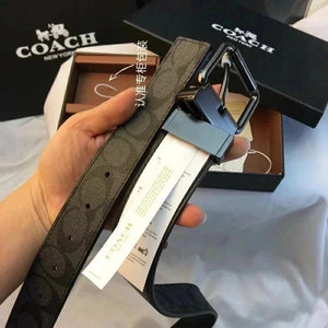 COACH Belt Top version New Full Set Men's Double-Sided Belt Business Casual All-Match Pin Buckle Smooth Buckle Casual Belt Men's and Women's All-Match Trouser Belt