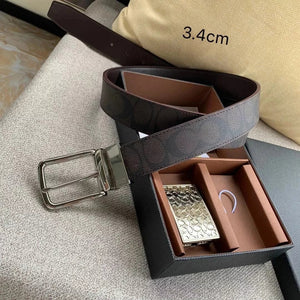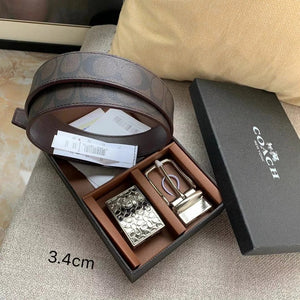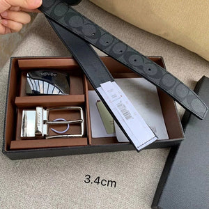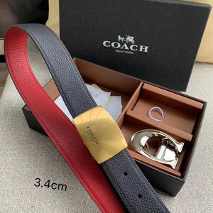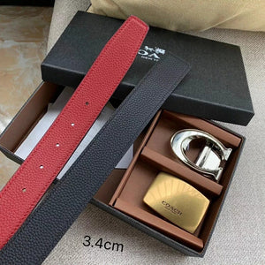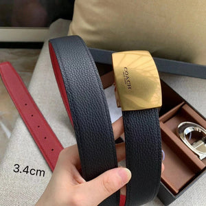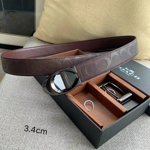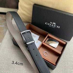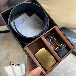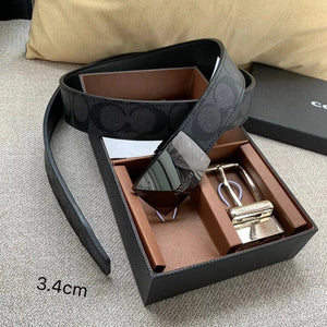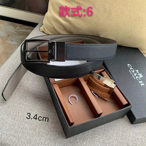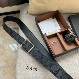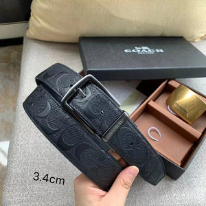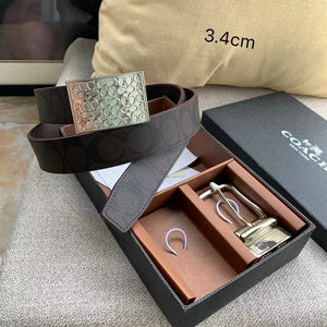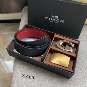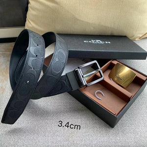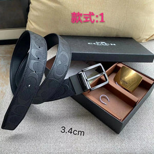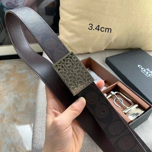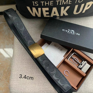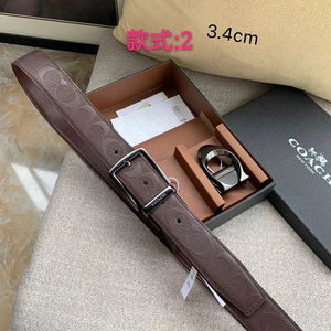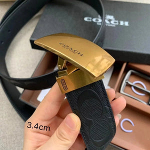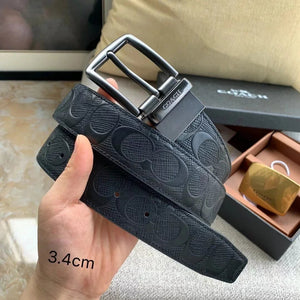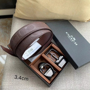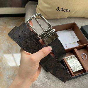 COACH Belt Top version New Full Set Men's Double-Sided Belt Business Casual All-Match Pin Buckle Smooth Buckle Casual Belt Men's and Women's All-Match Trouser Belt
