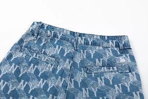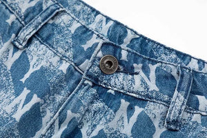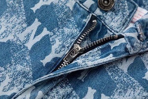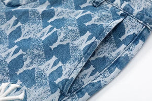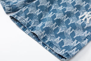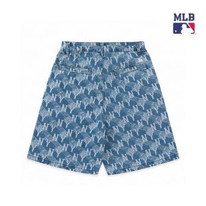 **Version MLB New Geometric Full Printed Denim Shorts for Men and Women