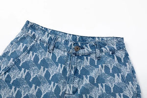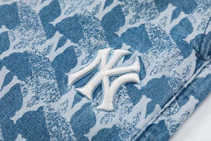 MLB Shorts Top Version New Geometric Full Printed Denim Shorts Men and Women Same Style