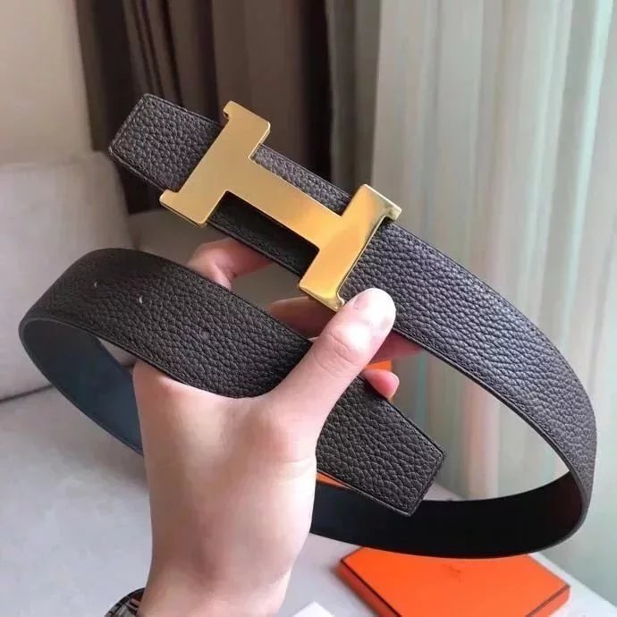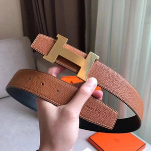 Hermes Belt Top version New High Quality Imported Calfskin Business Belt H Letter Buckle Casual Versatile Double-Sided Belt Pant Belt