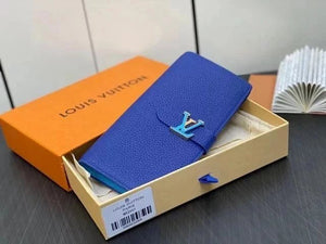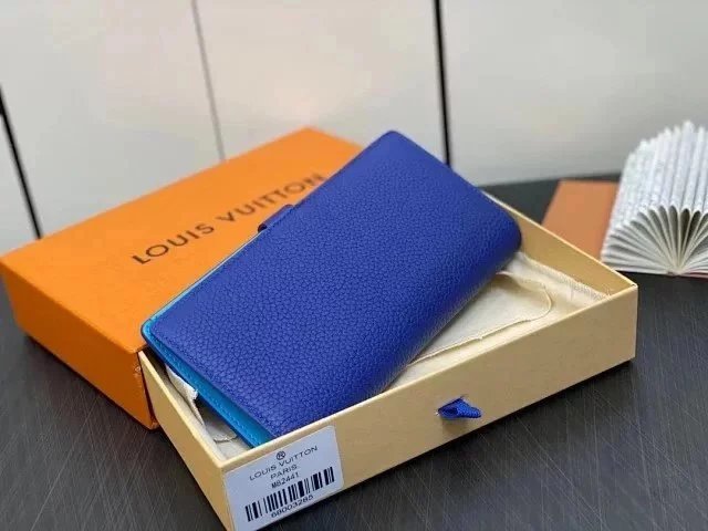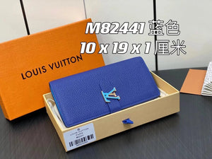 Louis Vuitton LV Wallets/Clutches Top version 【New?】M82441Blue M82512Green Full Leather Wallet Vertical Wallet Wallet Coin Purse Clutch Release Buckle Men's Wallet Wallet Women's Wallet Color Matching Cowhide Long Wallet