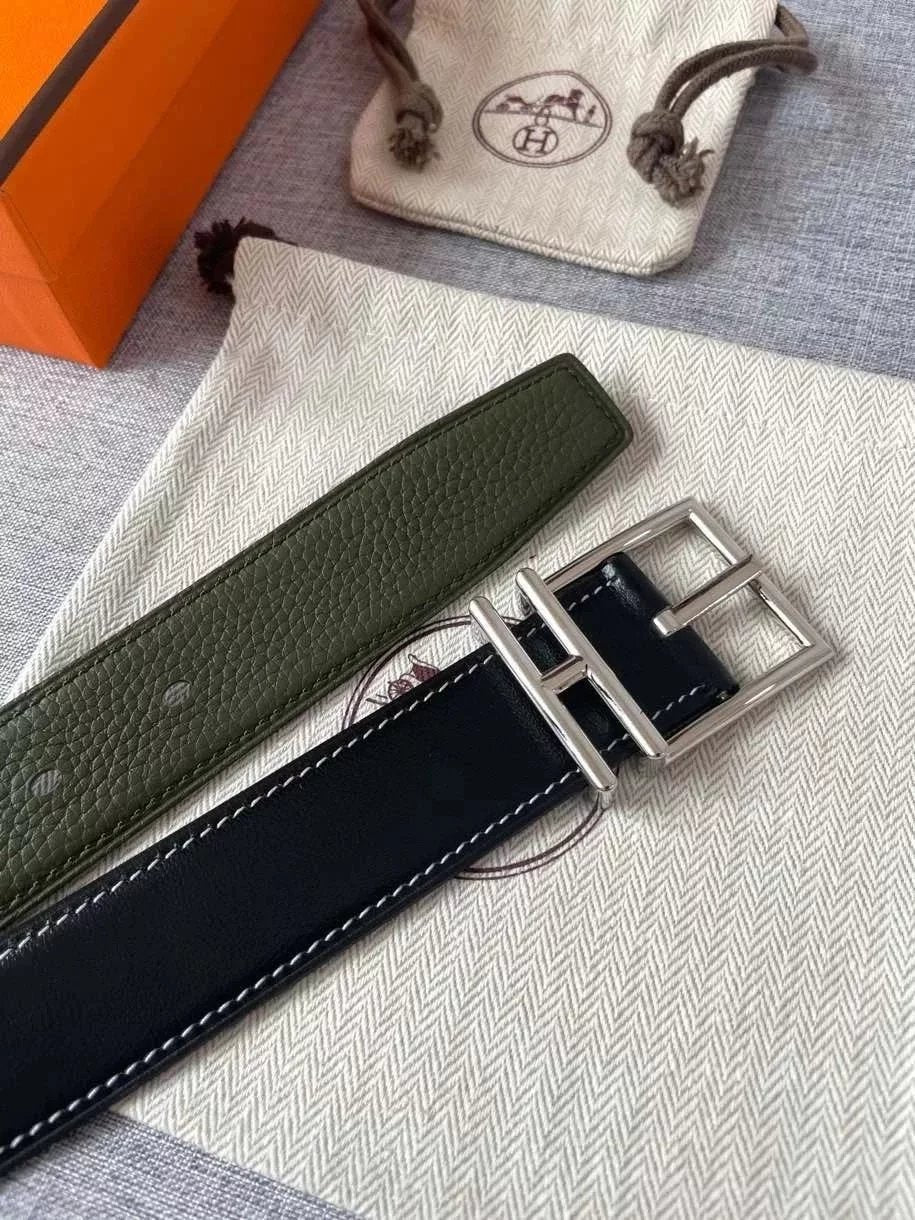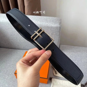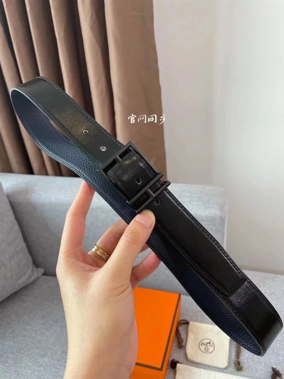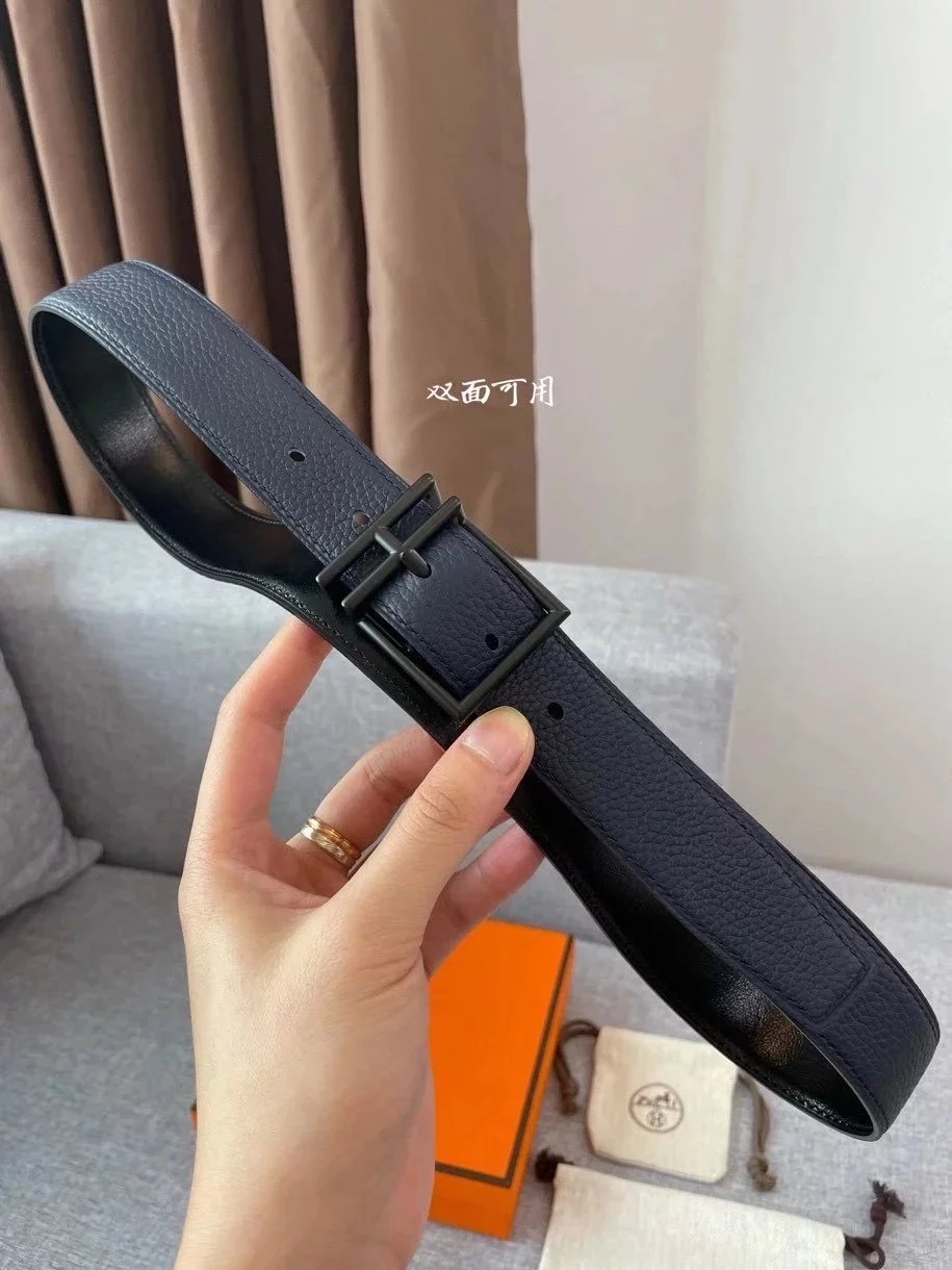 Hermes Belt Top version New Men's Belt3Import togo Leather Can Be Used on Both Sides of the Belt Stainless Steel Hardware Belt Pin Buckle Belt H Belt Loop Business Casual All-Match