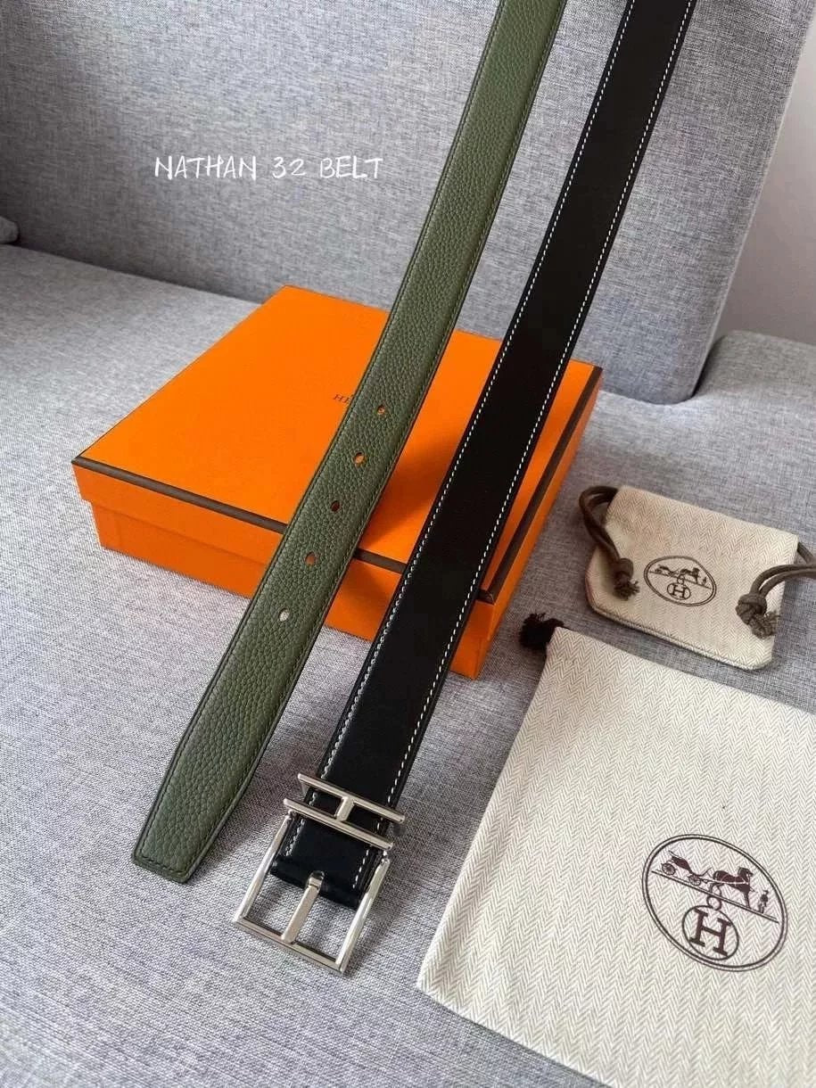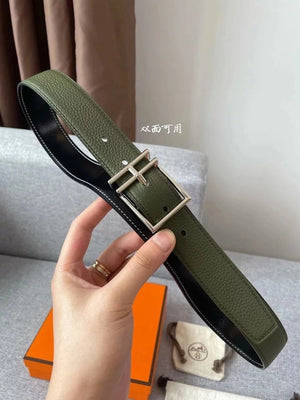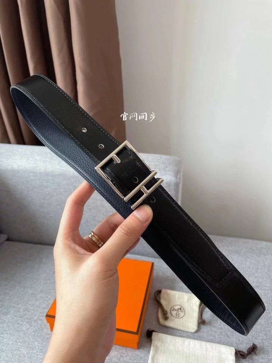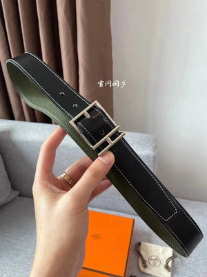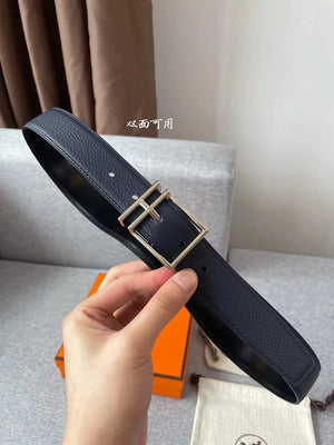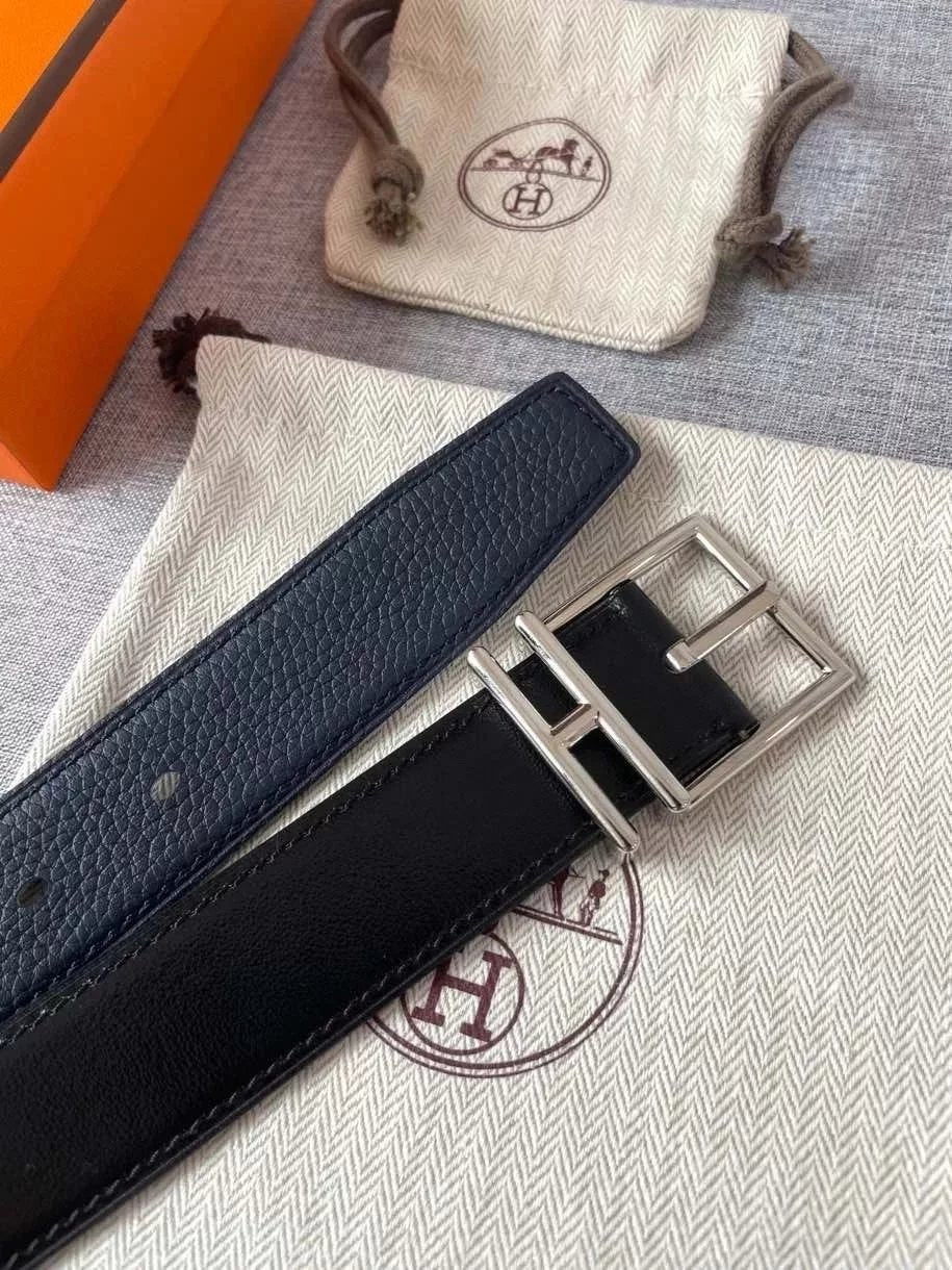 Hermes Belt Top version New Men's Belt3Import togo Leather Can Be Used on Both Sides of the Belt Stainless Steel Hardware Belt Pin Buckle Belt H Belt Loop Business Casual All-Match