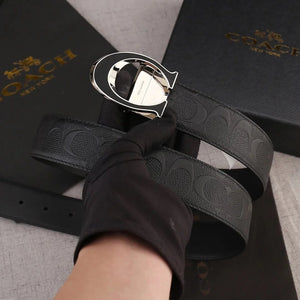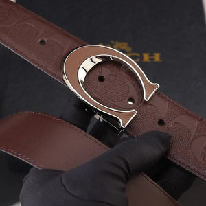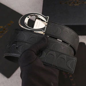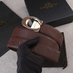 COACH Belt Top version New Men's Double-Sided Cowhide Belt Business Casual All-Match Smooth Buckle Embossed Belt