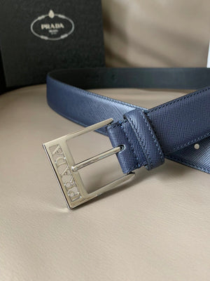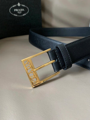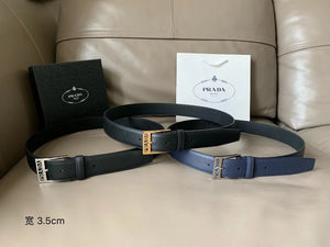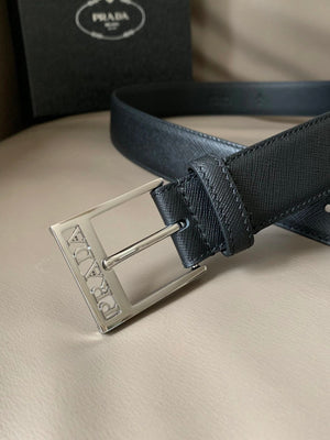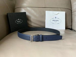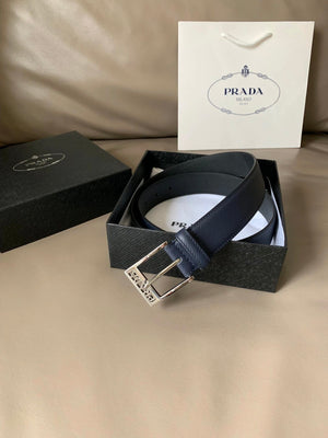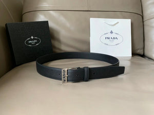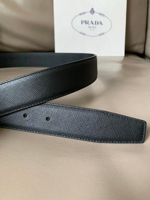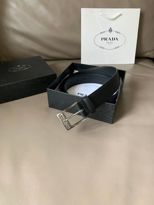 PRADA Belt Top version New Original Order Genuine Belt Men's Pin Buckle Belt Business Casual Cross Pattern Black Coffee Double-Sided Pure Original Leather Imported from Italy Cowhide Leather3.5