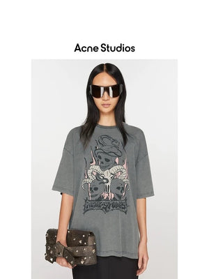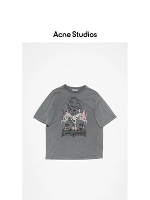 **Version [New] Acne Studios Men's and Women's Same Retro Distressed Faded Cotton Crew Neck T-shirt Short Sleeves Top before Purchase Instructions