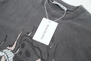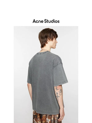 Acne Studios T-shirt Top Version【New Product】Men's and Women's Same Retro Distressed Faded Cotton round Neck T T-shirt Short Sleeve Top