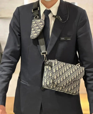 (What You See Is What You Get) This Saddle Three-Piece Handbag Is a New Product of the 2023 Fall Men's Clothing Series. It Is Elaborately Made of Beige Oblique Printed Fabric, Which Is Eye-Catching and Versatile. Three-in-One Style with a Zipper Bag, Highlighting the Front Saddle Clutch and Nano Saddle Clutch, Both Can Be Disassembled. Practical and Exquisite, with Adjustable and Detachable Shoulder Strap, It Can Be Carried on the Shoulder Or Crossbody.