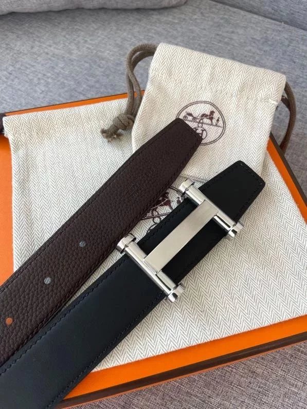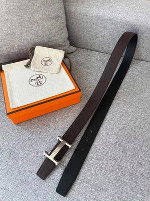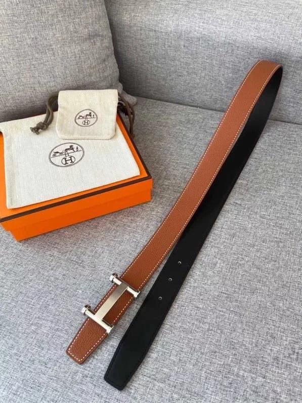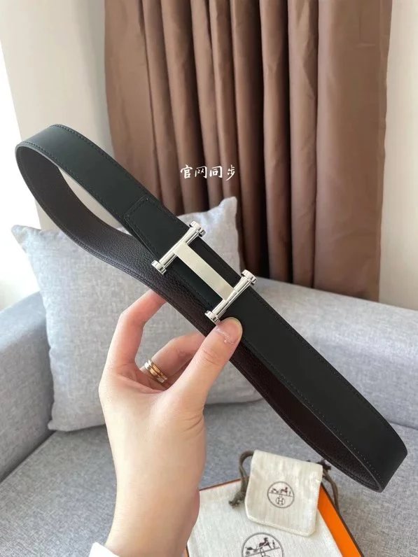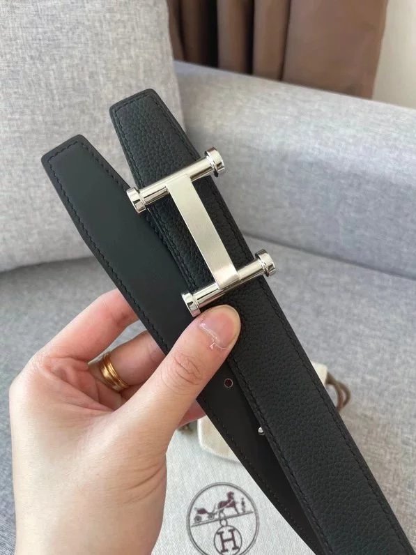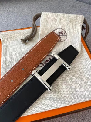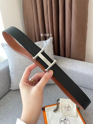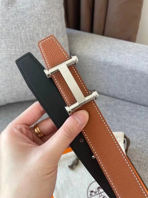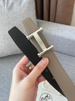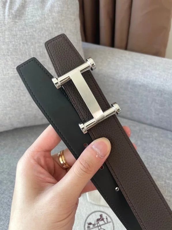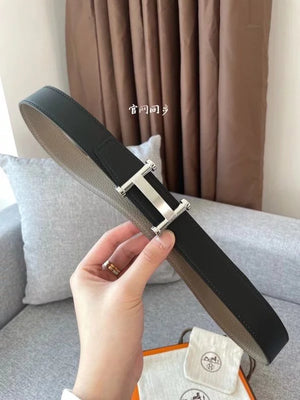 Hermes Belt Top version 【New products in stock】Genuine Leather Belt Business Casual Men and Women H Buckle Belt Double-Sided Available Pant Belt32mm