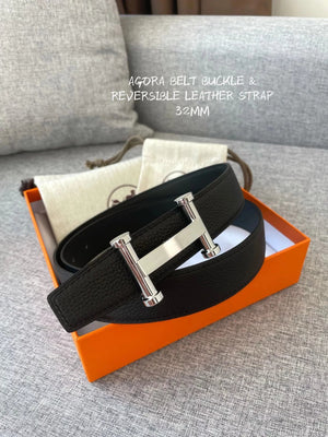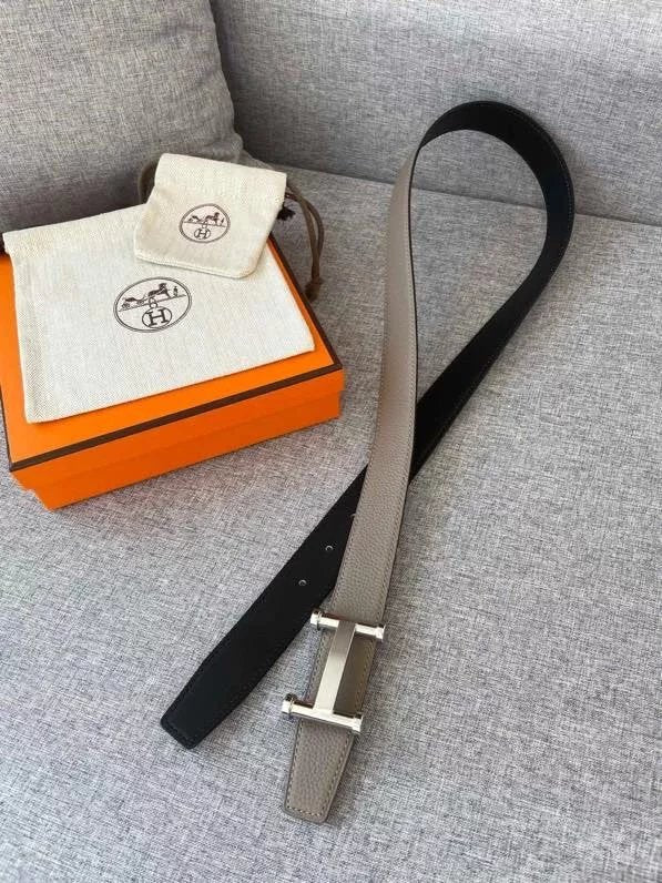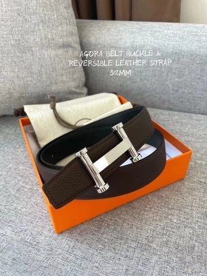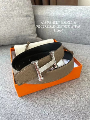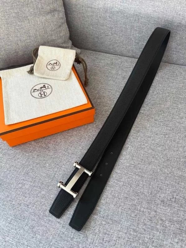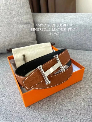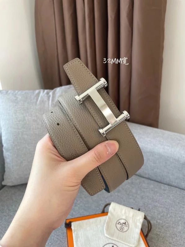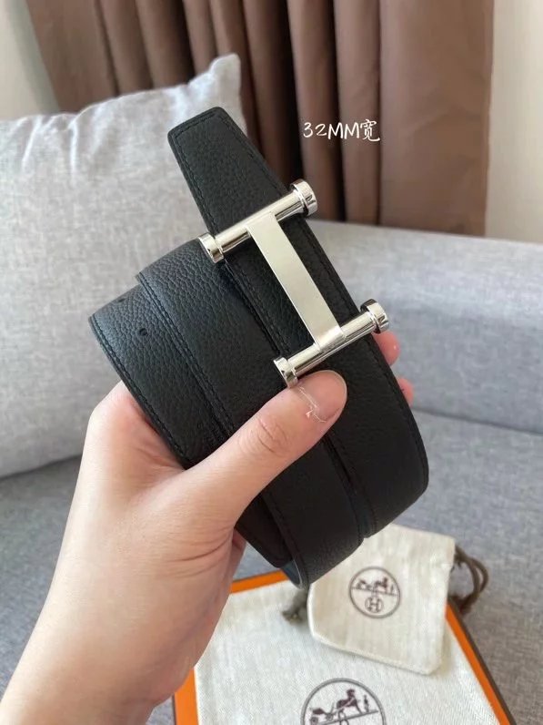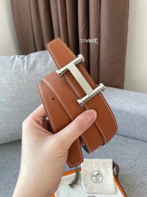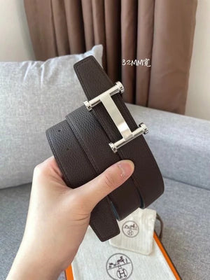 [New Products in Stock] Hermes Genuine Leather Belt Business Casual Men's and Women's H Buckle Belt Double-Sided Available Pant Belt 32mm Note before Purchase