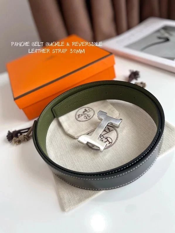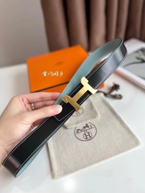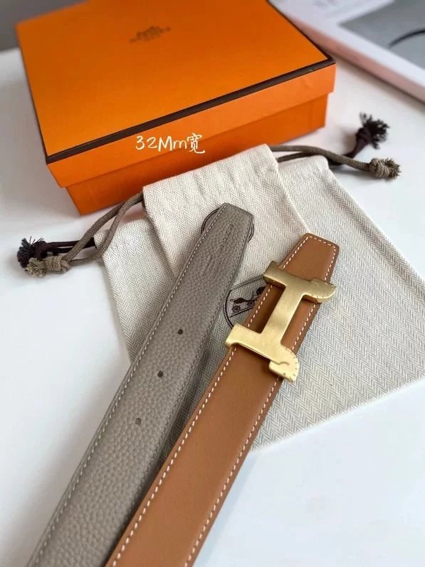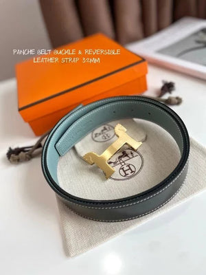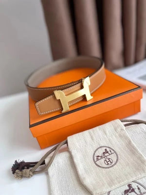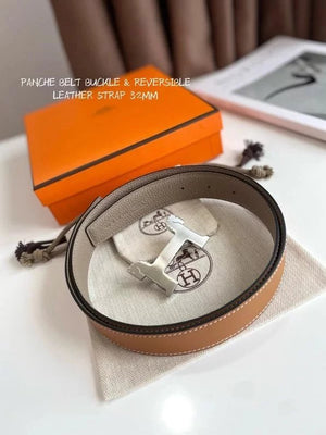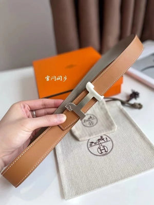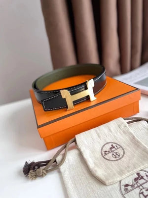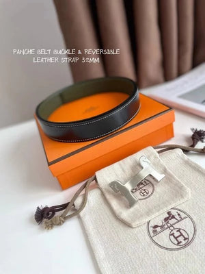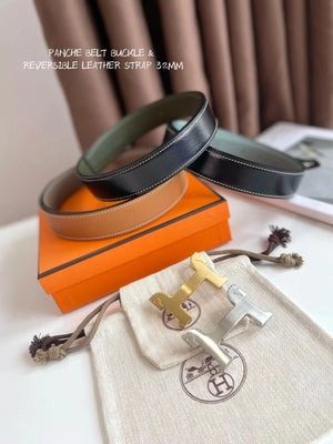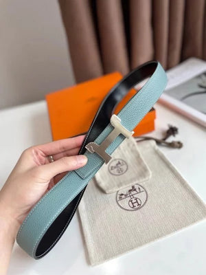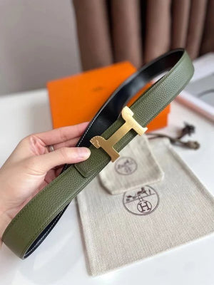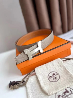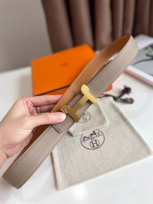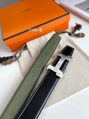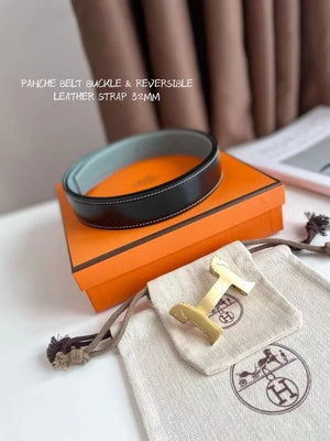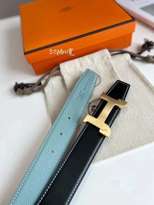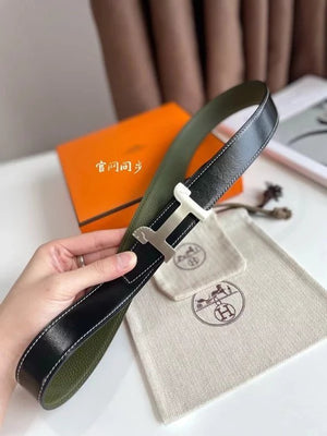 Hermes Belt Top version 【New products in stock】Genuine Leather Belt Business Casual Unisex H Buckle Belt Double-Sided Available Pant Belt32mm