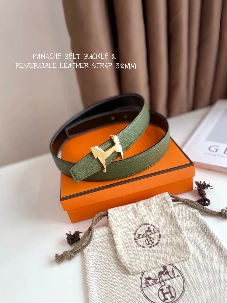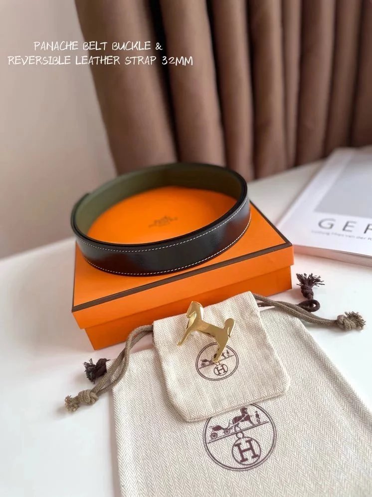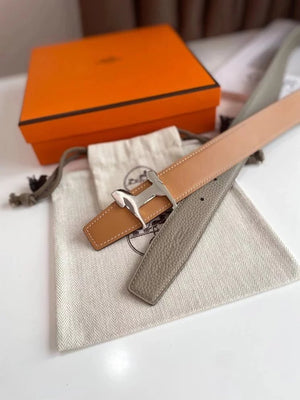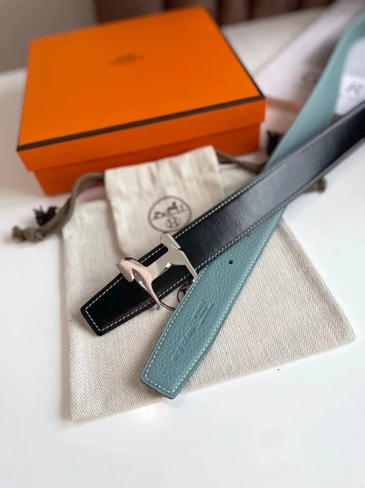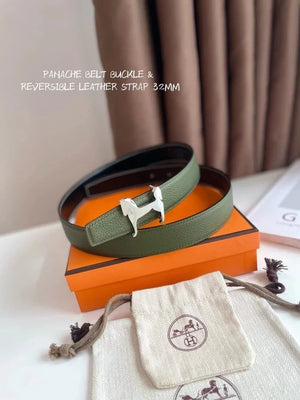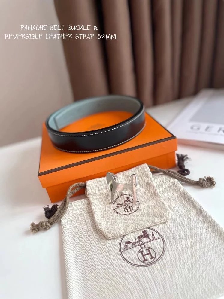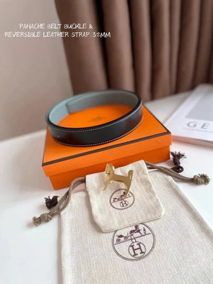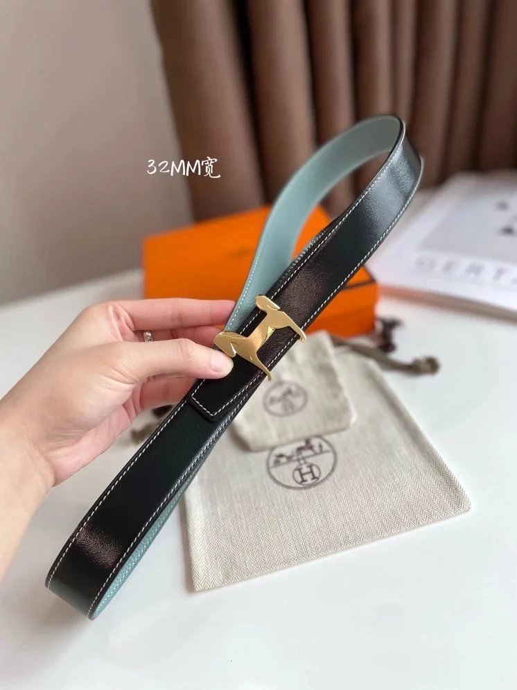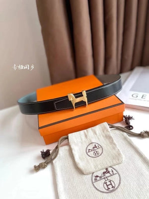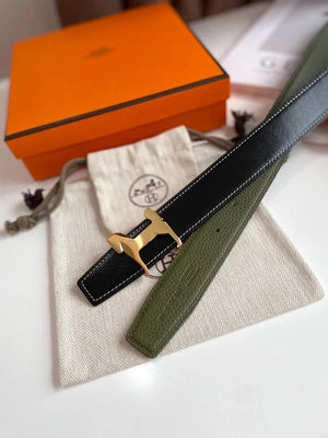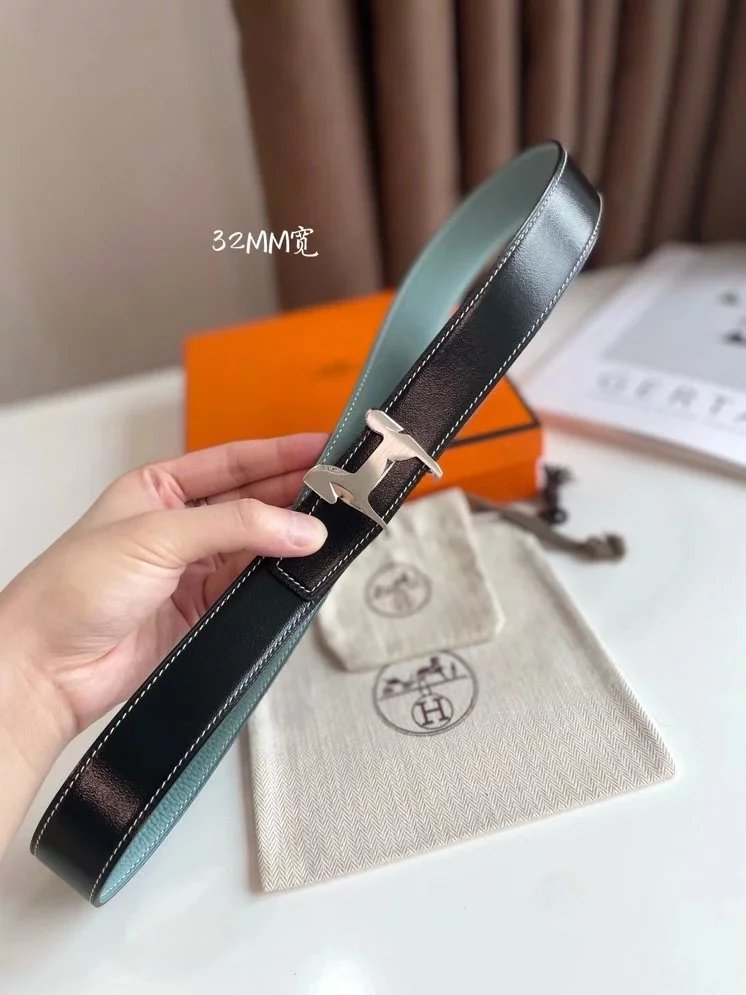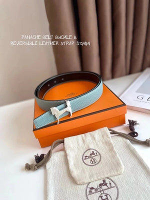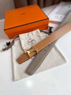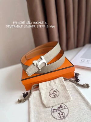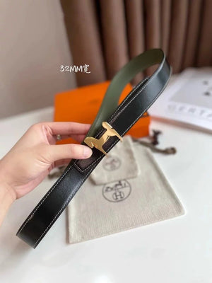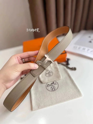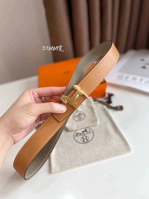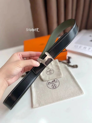 Hermes Belt Top version 【New products in stock】High Quality Genuine Leather Belt Business Casual Men and Women H Buckle Belt Double-Sided Available Pant Belt32mm