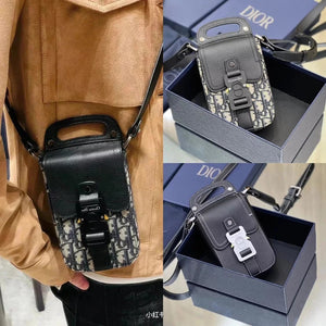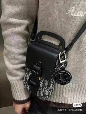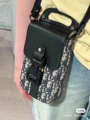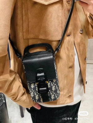 Dior Men's Bag Top version New Saddle Mobile Phone Bag oblique Printed with Grain Cowhide Saddle Flap Bag mini Saddle Bag Men's and Women's Bags Saddle Handbag New Mobile Phone Bag