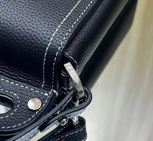 Oblique Print with Black Grain Side Cow Leather Saddle Flap Embellished with Christian Dior Logo Aluminium Buckle. With a Hard Handle and a Removable and Adjustable Leather Shoulder Strap, You Can Carry, Shoulder Or Cross Body.