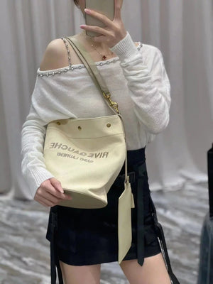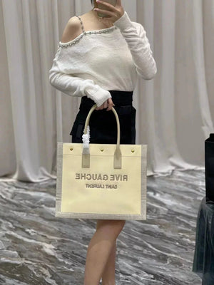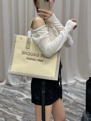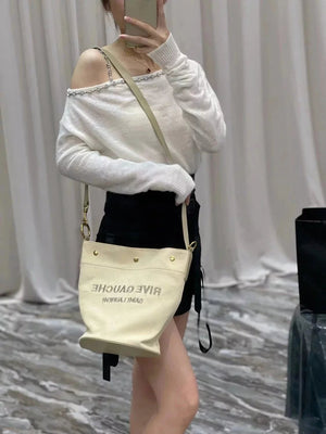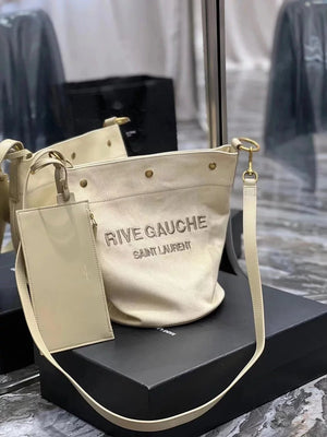 YSL Women's Bag Top version 【New Shelf Original Leather】Autumn and Winter New Counter Latest RIVEGAUCHE French Linen Bucket Bag Bucket Bag Crossbody Bag Shoulder Bag RiveGaucheToteBag Left Bank Shopping Bag Tote Bag Beach Bag Oatmeal Color Tote Bag Shoppi