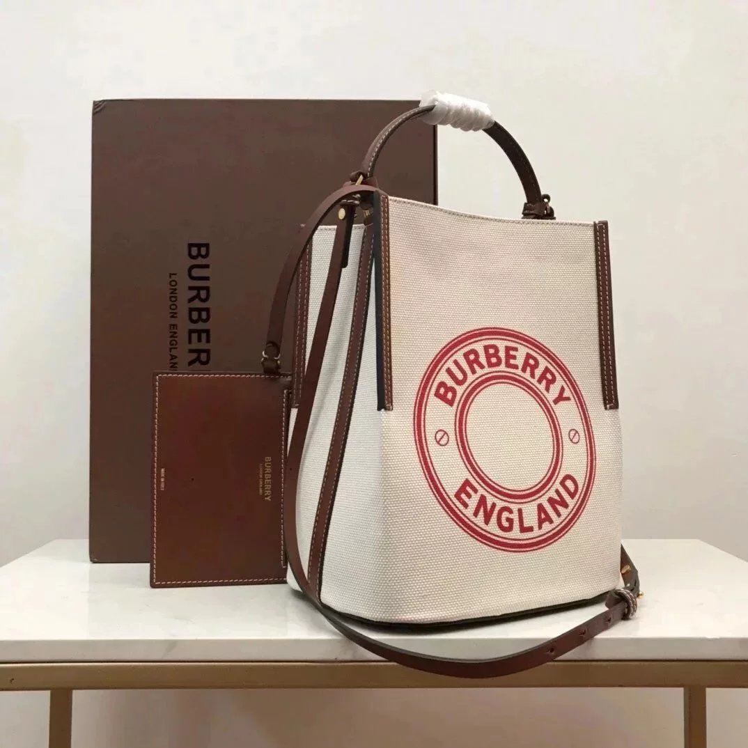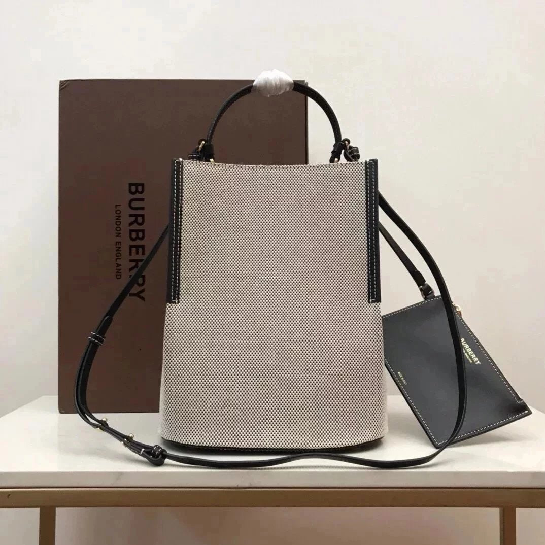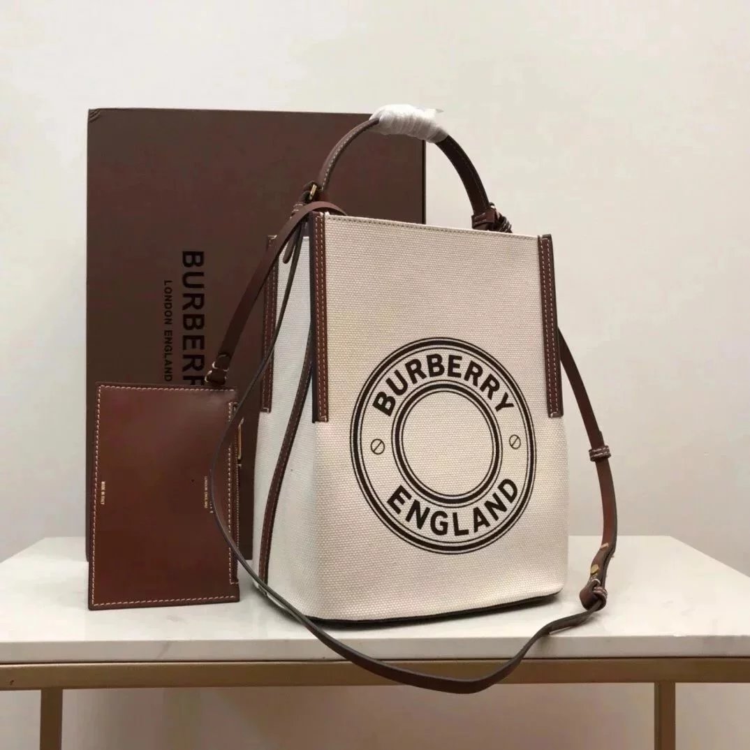 Burberry Women's Bag Top version New Silk Screen logo Bucket Bag Women's Bag Equestrian Style Cotton Canvas Bucket Bag Hand Bag Crossbody Bag Comes with Artistic Fresh Atmosphere Upper Body Matching Is Also beyond Imagination to Show Temperament