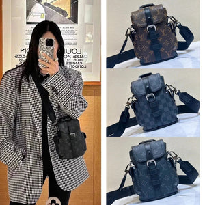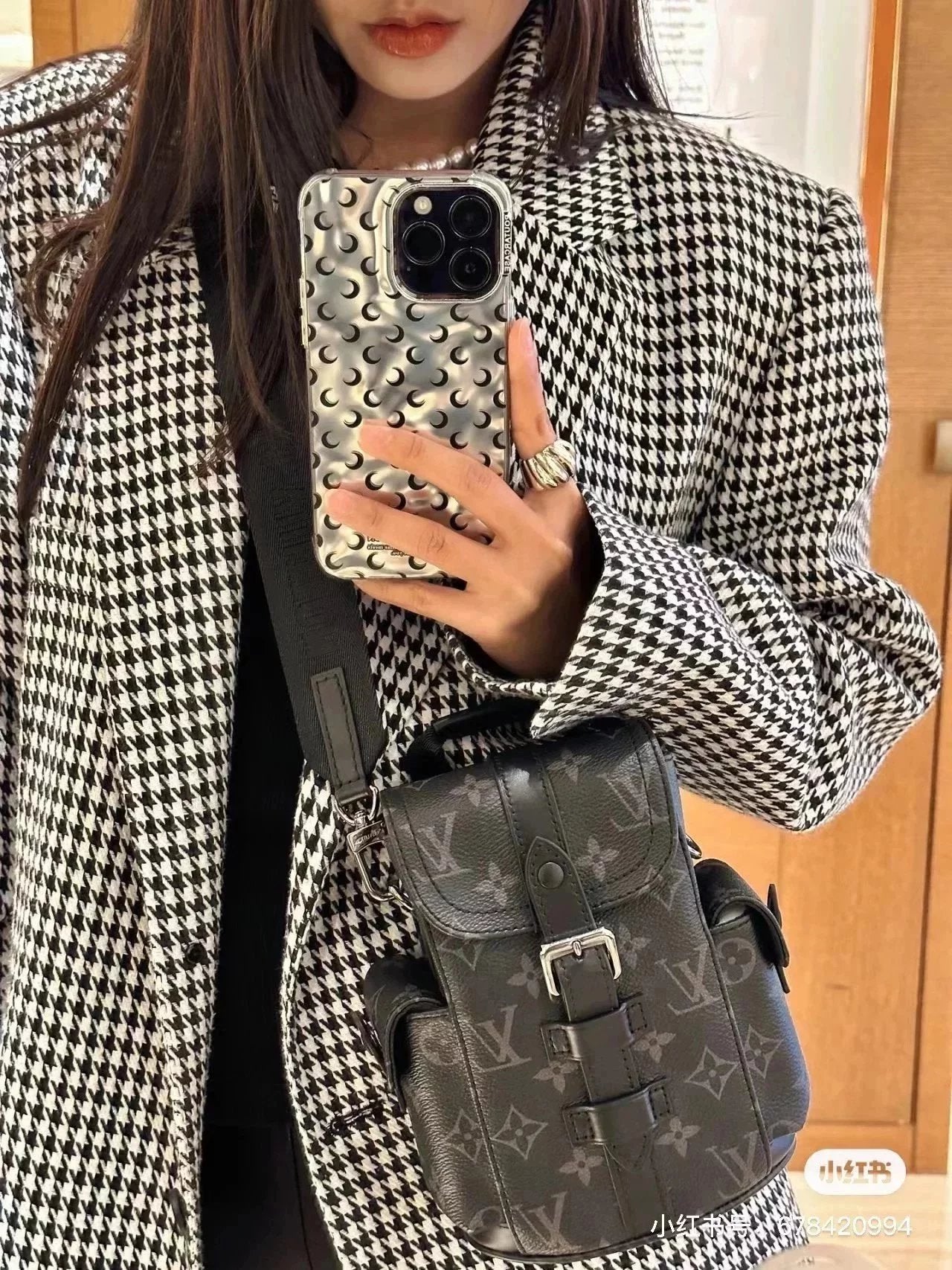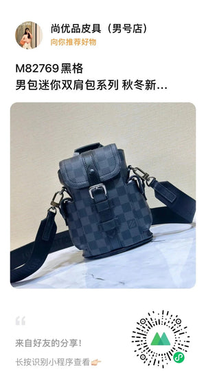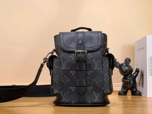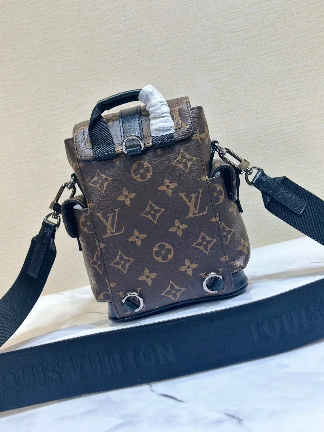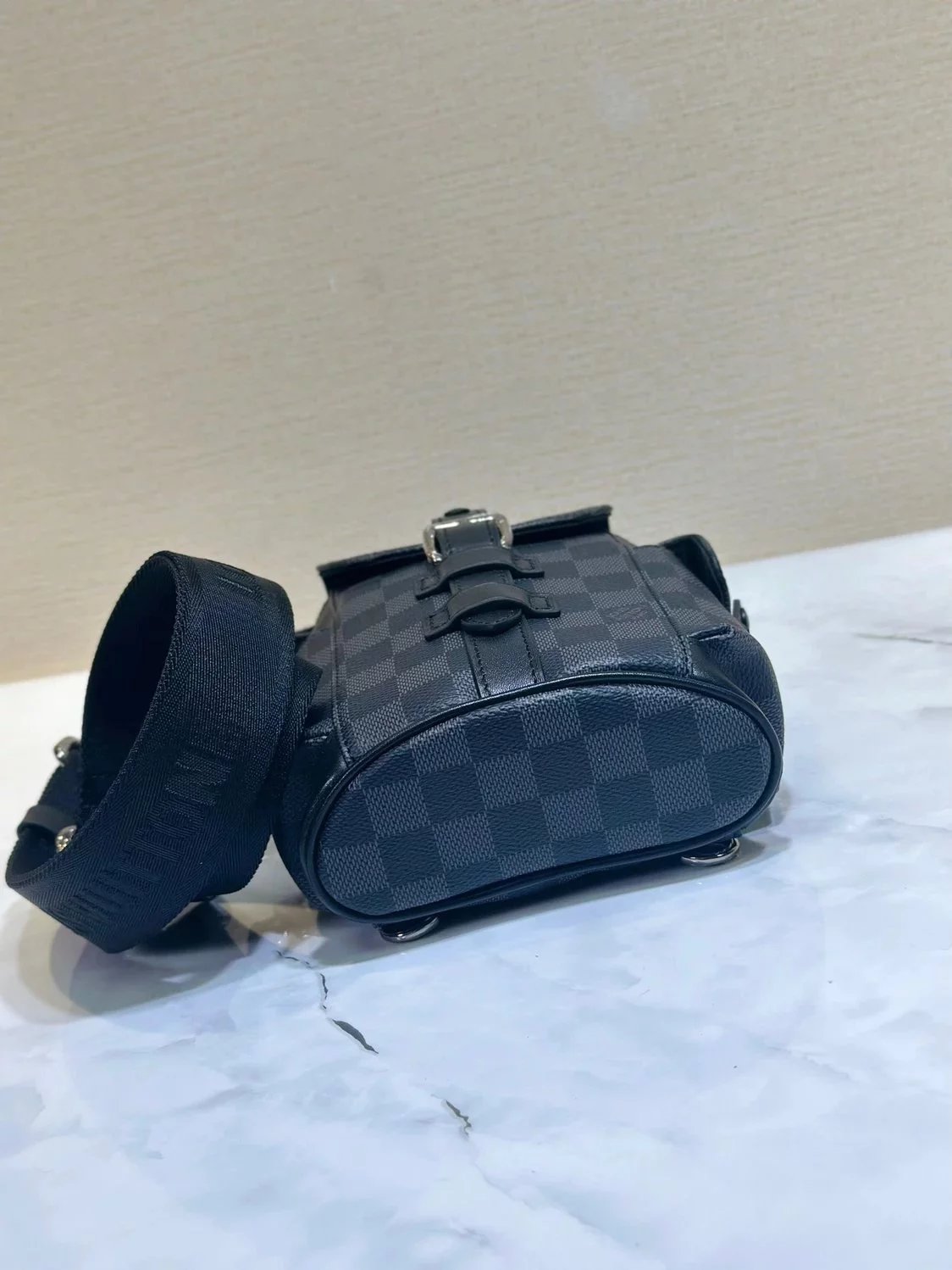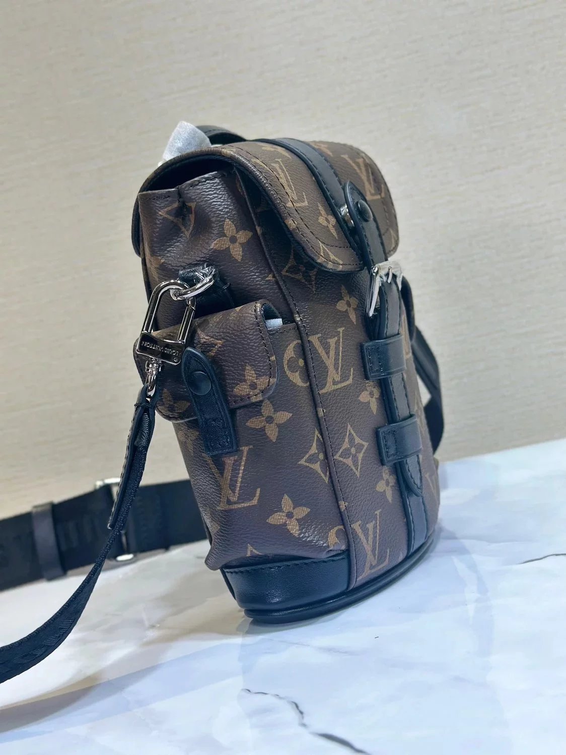 Louis Vuitton LV Men's Bag Top version New【Tax-Free Version】M82769Presbyopic Autumn and Winter New Men's Bag Black Flower Mini Backpack Style Crossbody Bag Men NanoChristopher Handbag Unisex Shoulder Bag Mini Handbag Chest Bag
