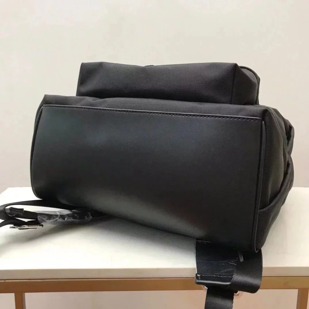 [B Home **Original Order] Nylon Backpack, with Badge Applique and Brand Address Printing, with Smooth Leather Trim.
