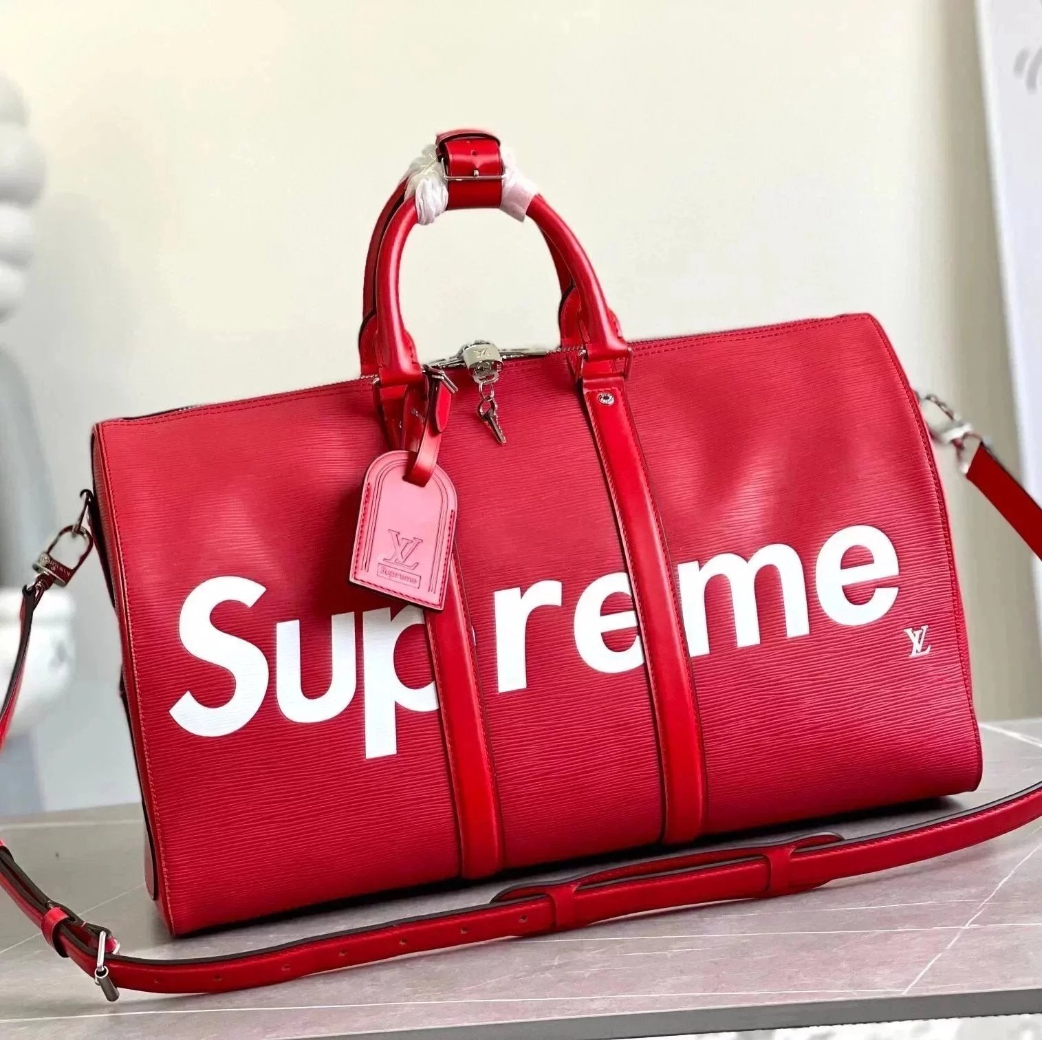 .. Supreme Keepall Travel Bag 45cm M53419 Super Popular Louis Vuitton ~ Supreme Travel Bag First-Line International Famous Louis Vuitton and Street First-Line Brand Fashion Brand Joint Cooperation Keppall 45cm Travel Bag Made of EPL Water Ripple Cowhide This Time the Bag Style in the Series Is the Most Eye-Catching. for the L Family, This Style Can Be Said to Be a Breakthrough. the Unique and Lively Style Makes the Classic Design Style Show Different Charm Size 45x27x20cm. Note before Purchase