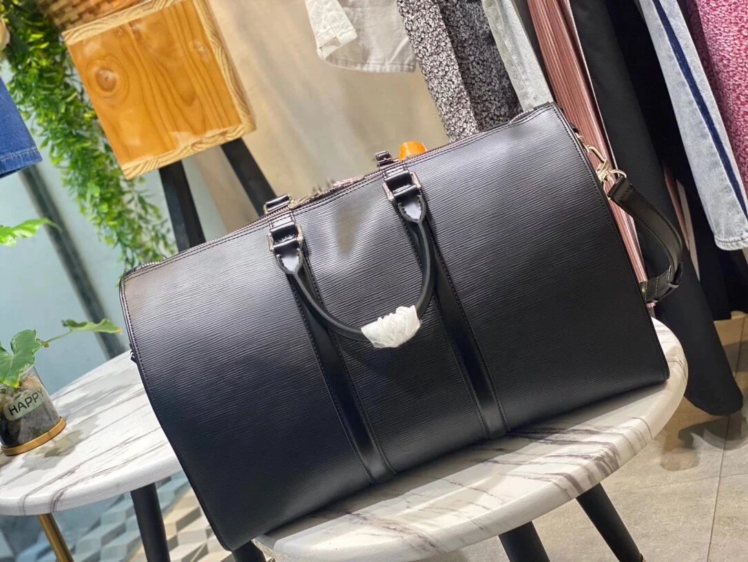 Louis Vuitton LV Travel Bag Top version Original Black supremekeepall45Travel Bag Travel Bag Luggage Bag Luggage Bag Imported Cowhide Water Ripple All-Steel Hardware Model M53419Size45×27x20