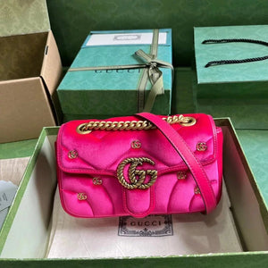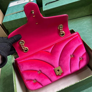 Gucci Women's Bag Top version 【**Original Cowhide】2023Autumn and Winter New Marmont Mamon Series Mini Backpack Chain Bag Medium Backpack Heart Bag Pairs G Rivet Embellished Velvet Marmon Bag Autumn and Winter Velvet Women's Bag446744443497
