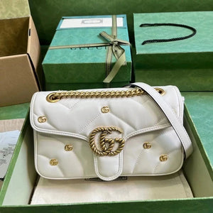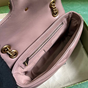 ? With a Full Set of Original Green Box Packaging? GG Marmont Series Medium Backpack. This GG Marmont Series Medium Backpack Is a Classic Bag with a Soft and Fresh Look, and the Small Double G Rivets Are More Eye-Catching. The Same Tone Leather Edge and Luxury Nude Pink Tone Complement Each Other, Opening the New Season of Charm. Bare Pink V-Shaped Quilted Full Leather, Bare Pink Leather Edging, Golden Tone Accessories, Exclusive on the Official Website, Small Double G Rivet Double G, Sliding Chain Can Be Adjusted to 55cm Shoulder Strap, or 30cm High Top Handle. It Can Also Be Used as a Crossbody Bag. Spring Fastener Flip, Weight: about 0.6,000G.