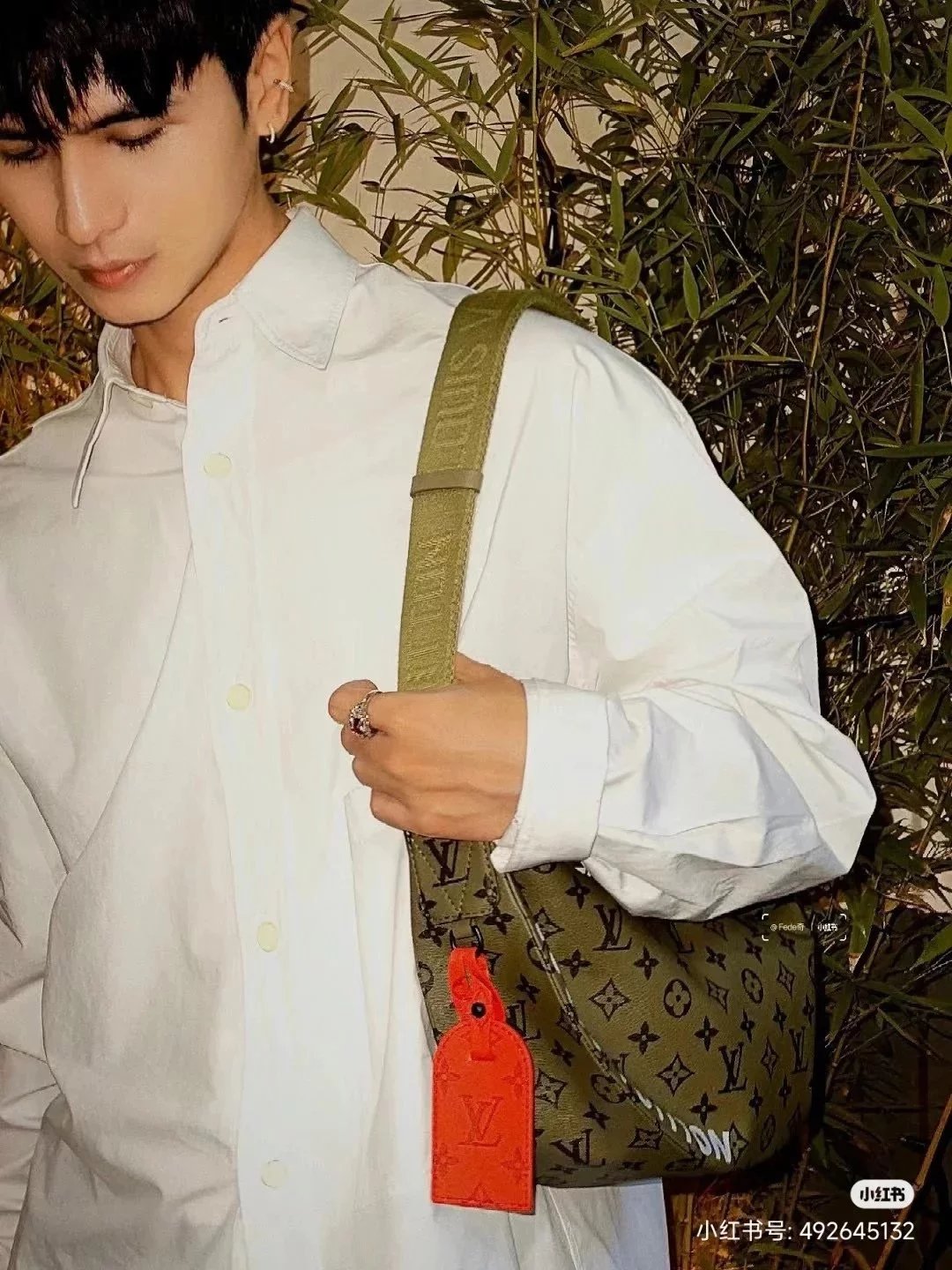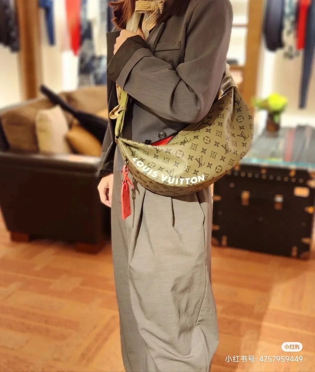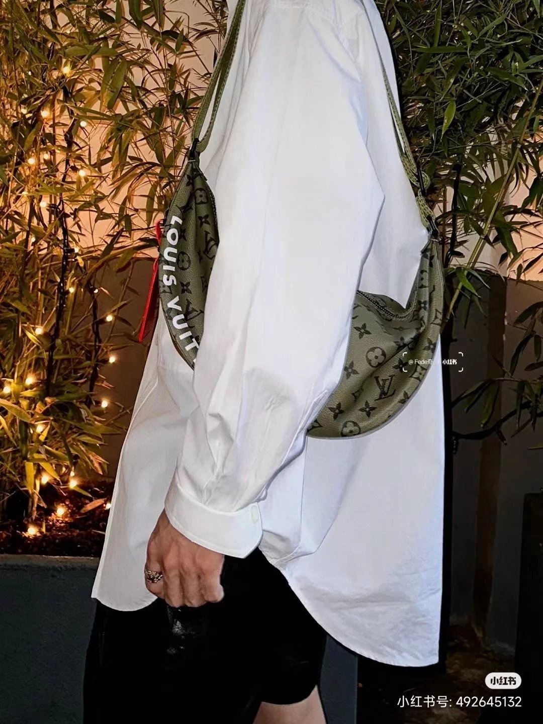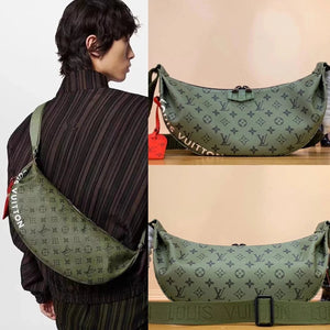 Louis Vuitton LV Men's Bag Top version 【Original Factory】M237792023Autumn and Winter New Green HAMC Men's Moon Bag Men's Chest Bag Backpack Women's Underarm Bag Selenodont Bag Hobos Original Leather One-Shoulder Crossbody Bag