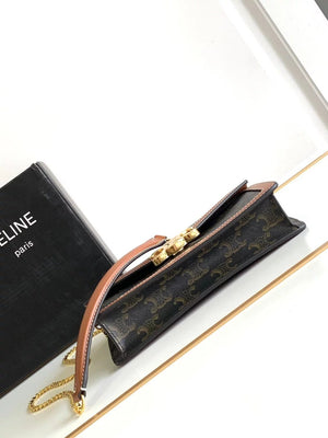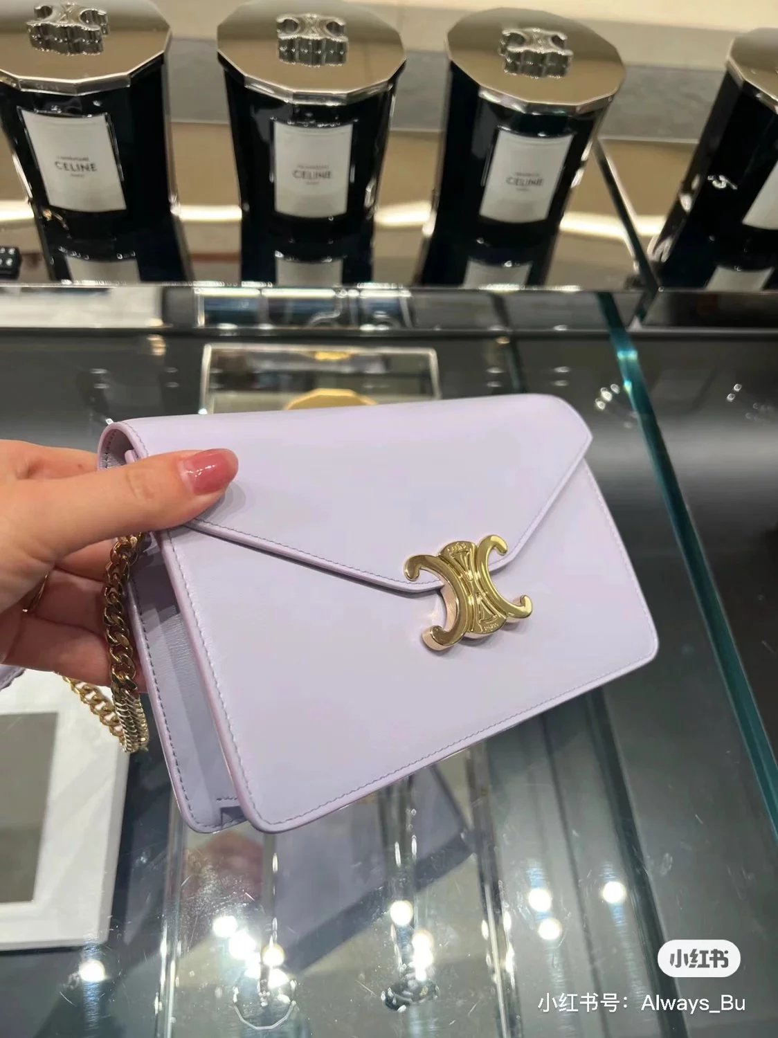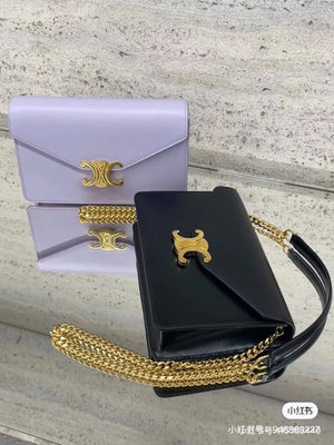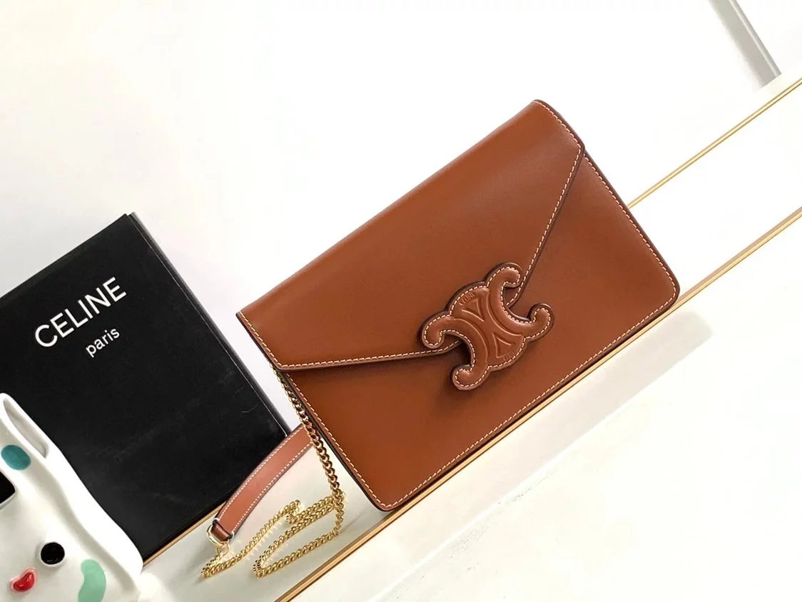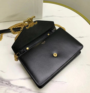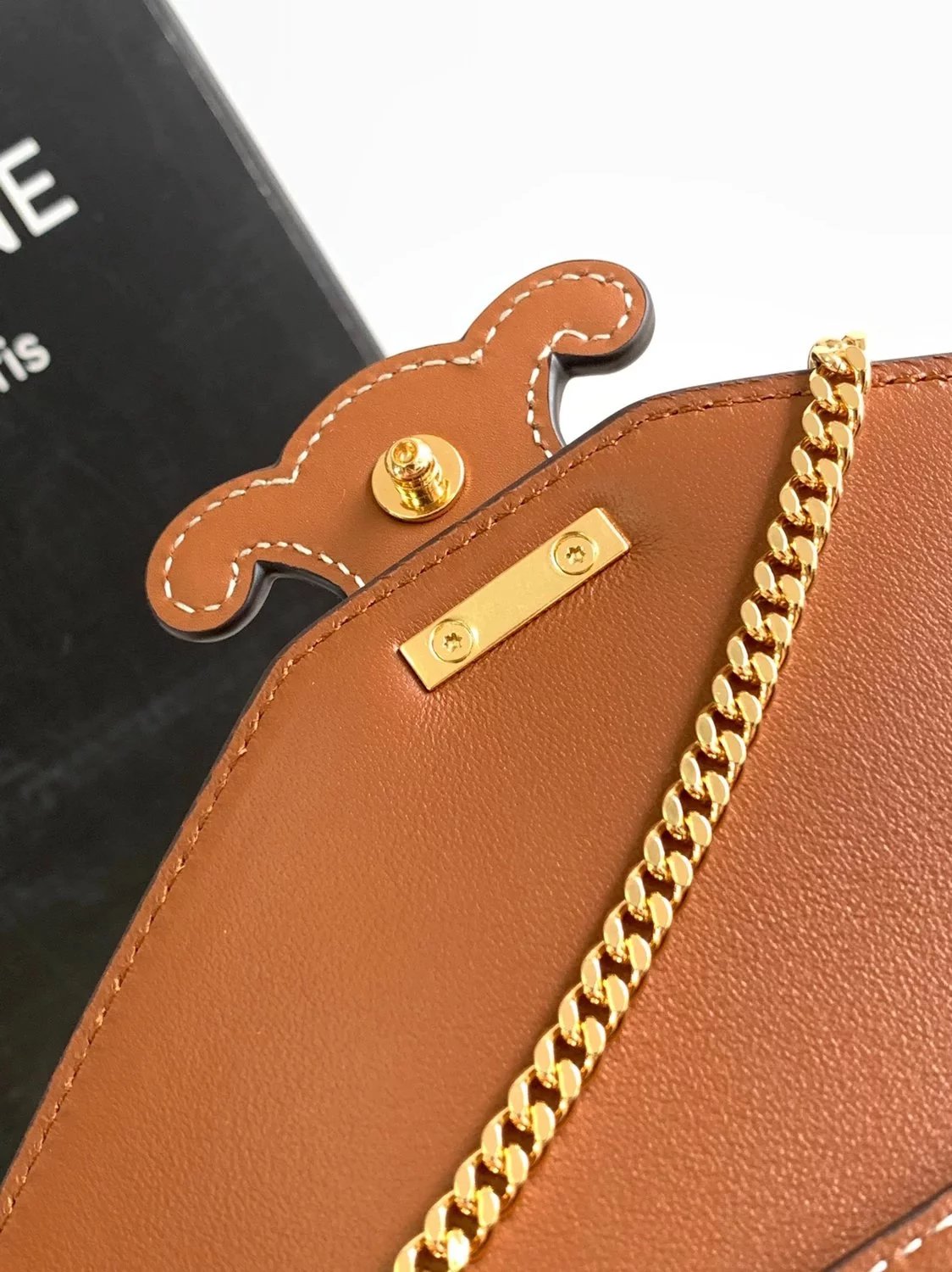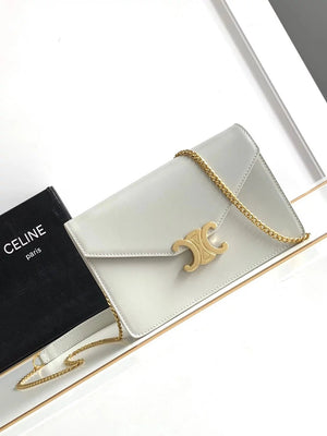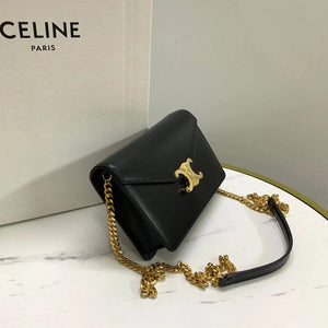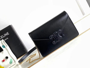 Celine women's bag Top version 【Original Factory】New CUIRTRIOMPHE Cowhide WOC Brand New Chain Leather Envelope Package Large113322Small Size10J733