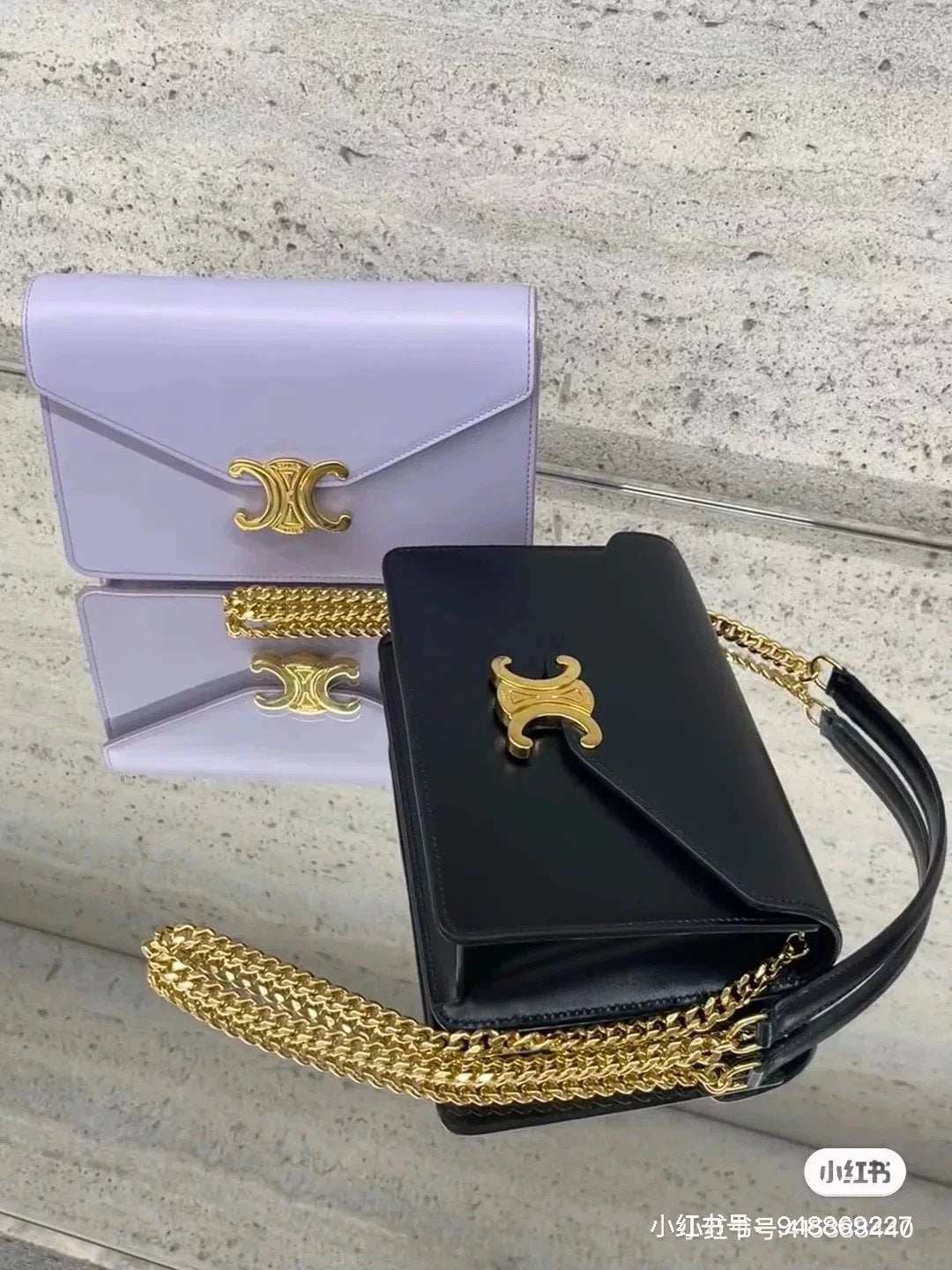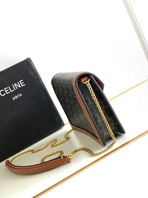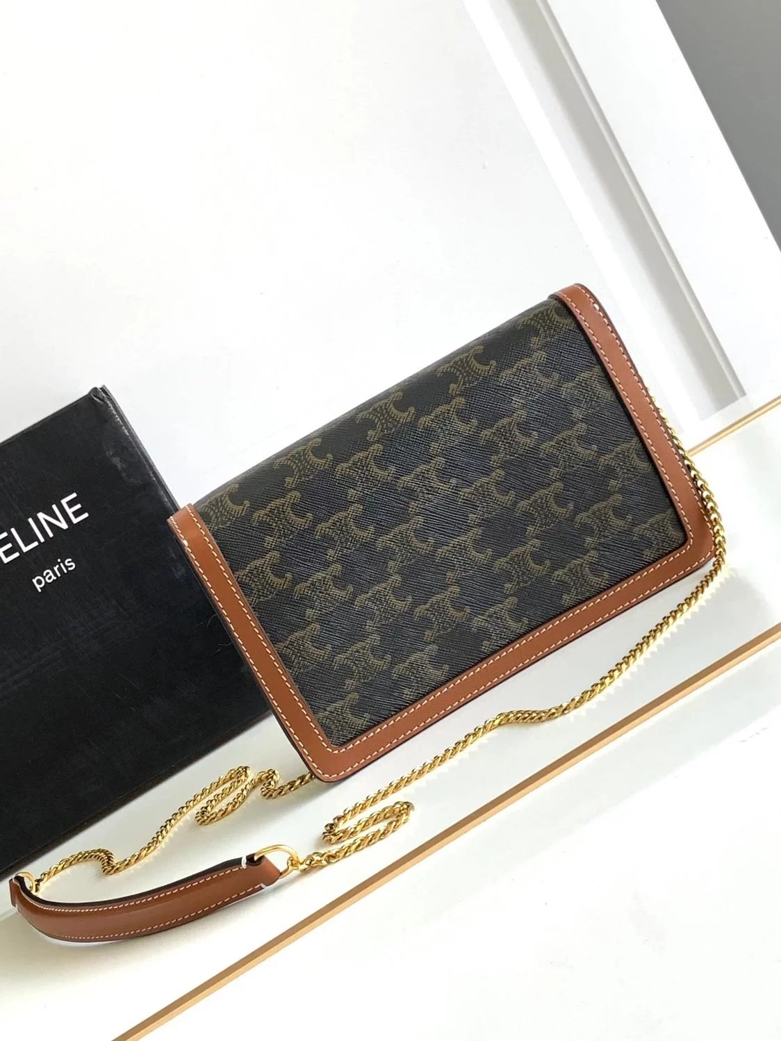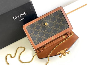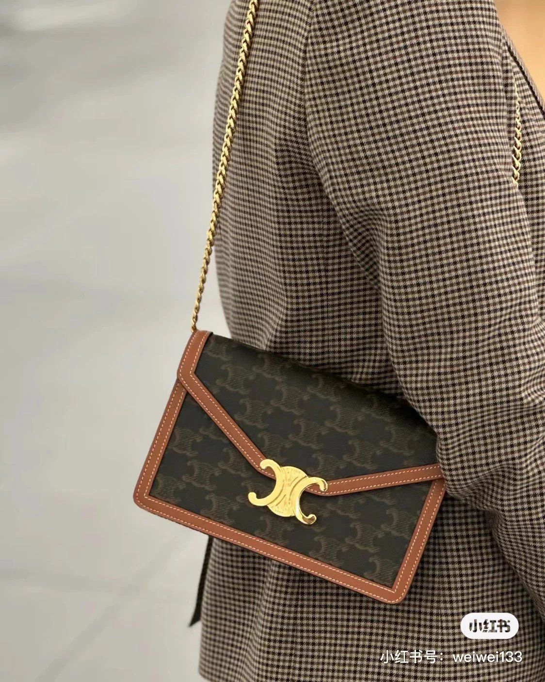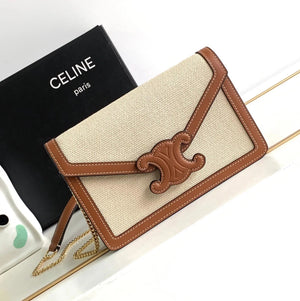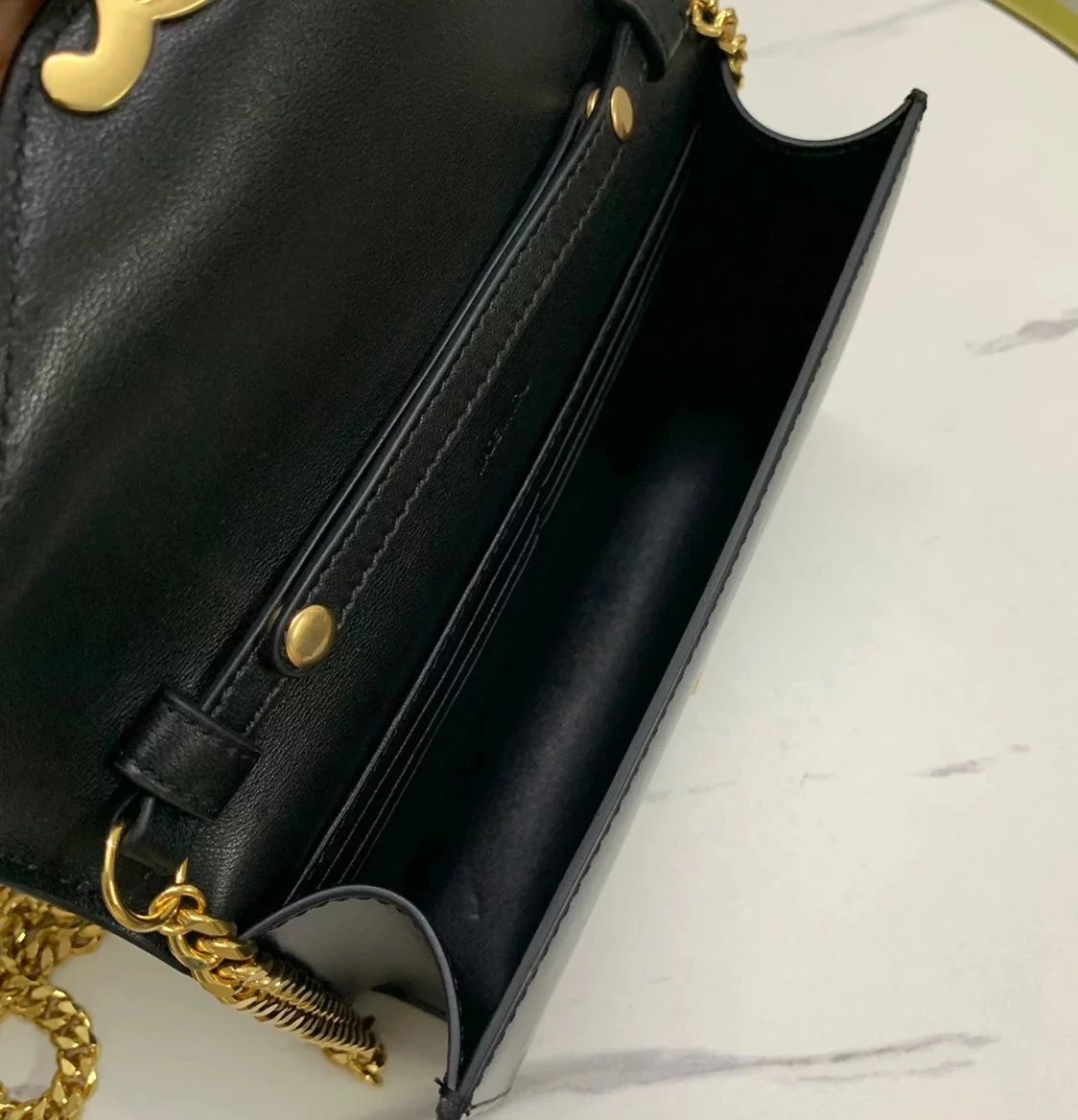 Celine women's bag Top version 【Original Factory】New CUIRTRIOMPHE Cowhide WOC Brand New Chain Leather Envelope Package Large113322Small Size10J733
