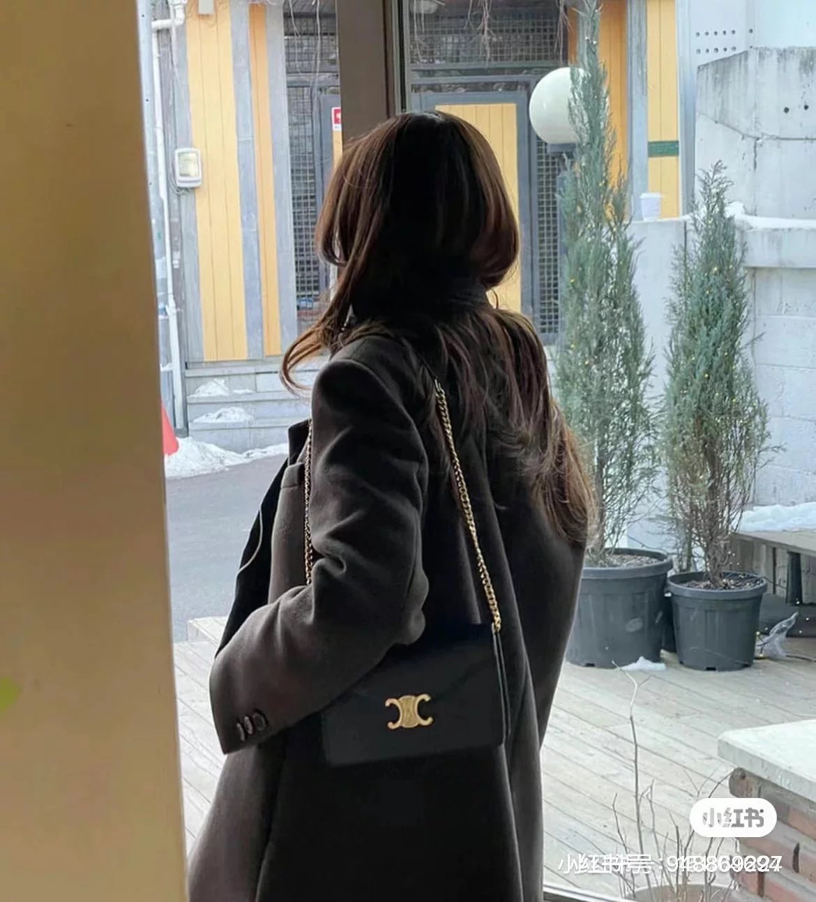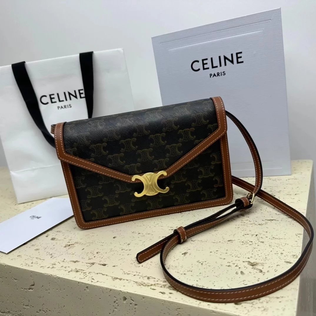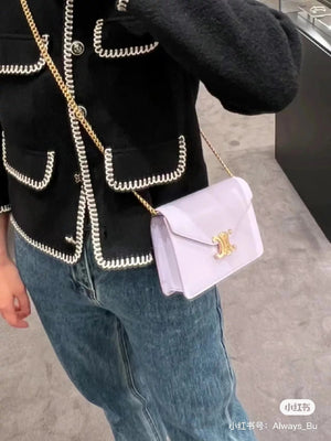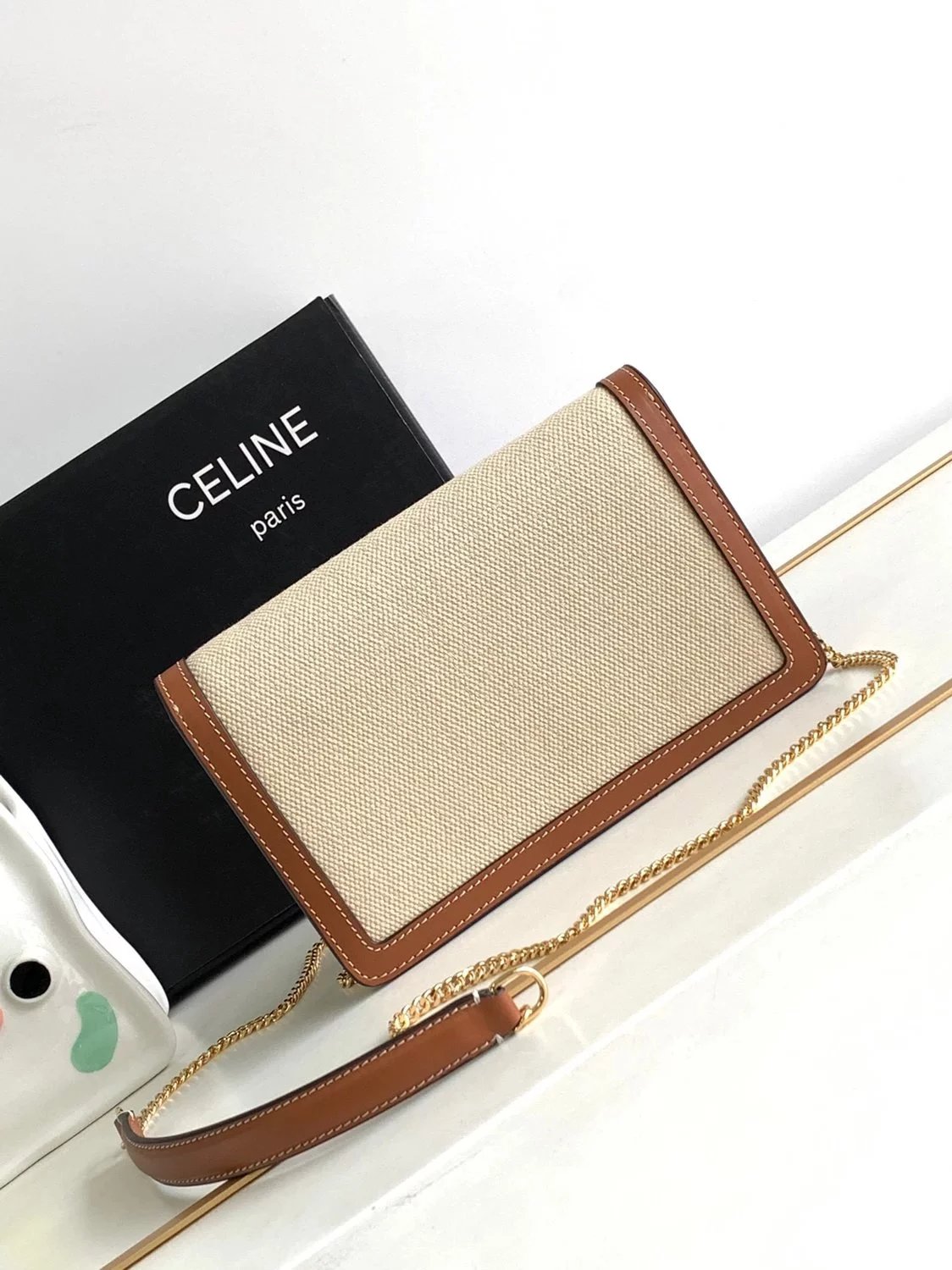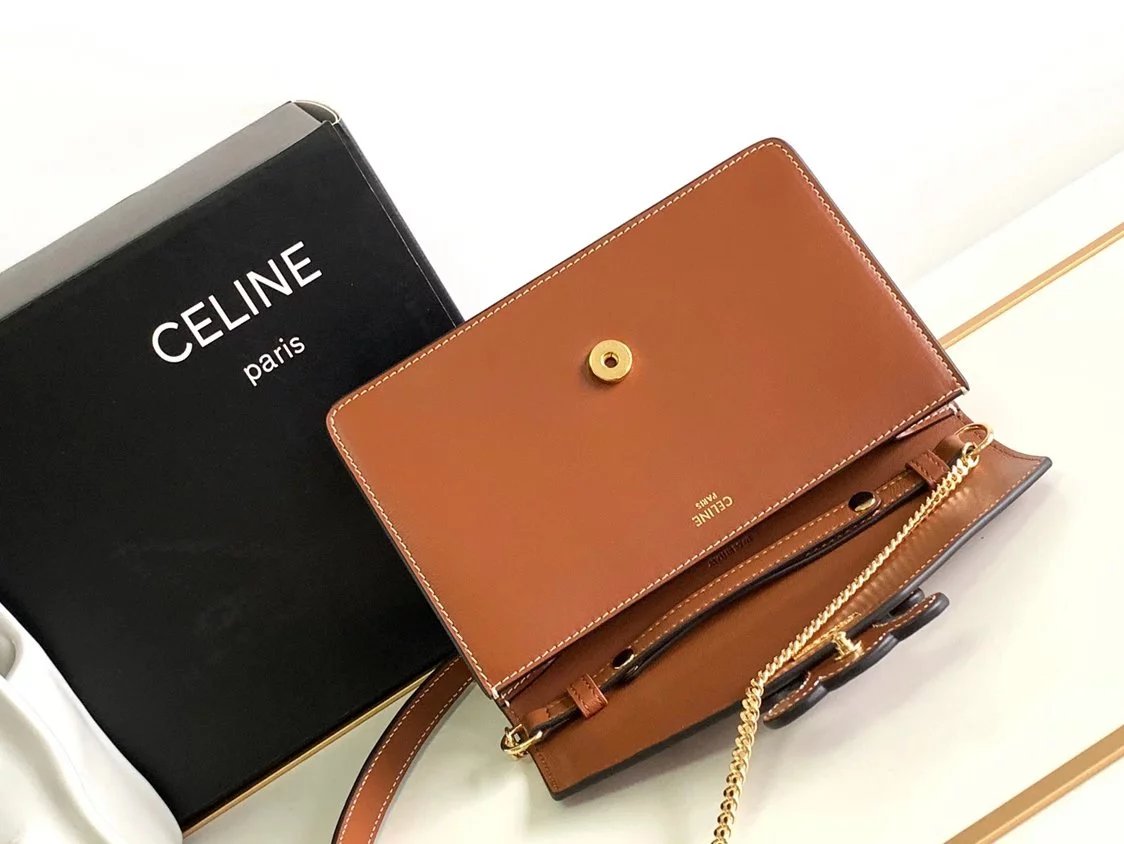 Celine women's bag Top version 【Original Factory】New CUIRTRIOMPHE Cowhide WOC Brand New Chain Leather Envelope Package Large113322Small Size10J733