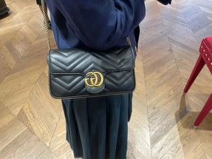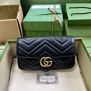 Gucci Women's Bag Top version 【Original Genuine Goods Leather】2023New Marmont Series Card Holder Mini Chain Wallet23New Version of Ma Meng Comes with Card Holder Black and White Chain Bag751526